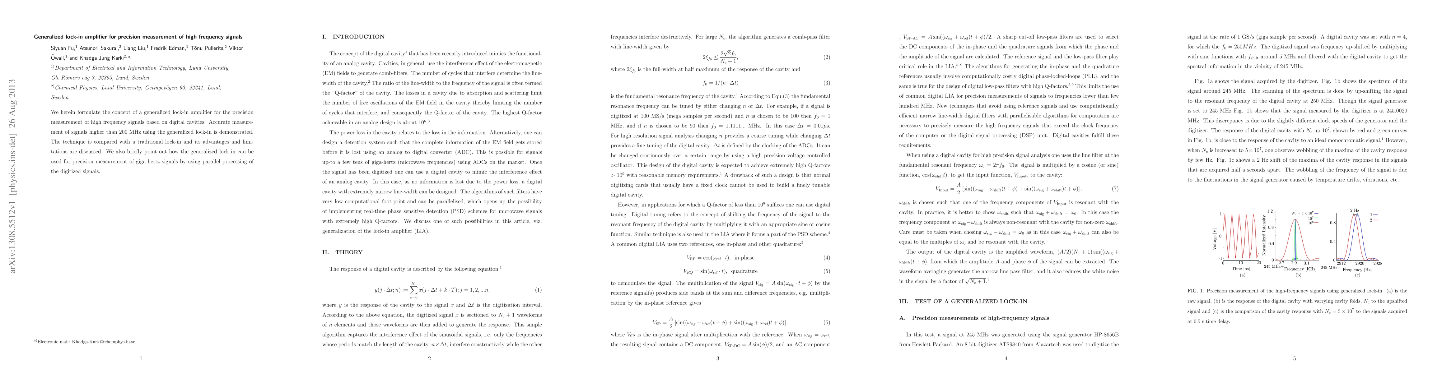 This paper introduces a generalized lock-in amplifier for high-frequency signal measurement, demonstrating its accuracy for signals above 200 MHz. The technique outperforms traditional lock-in methods and can extend to giga-hertz precision through parallel signal processing.