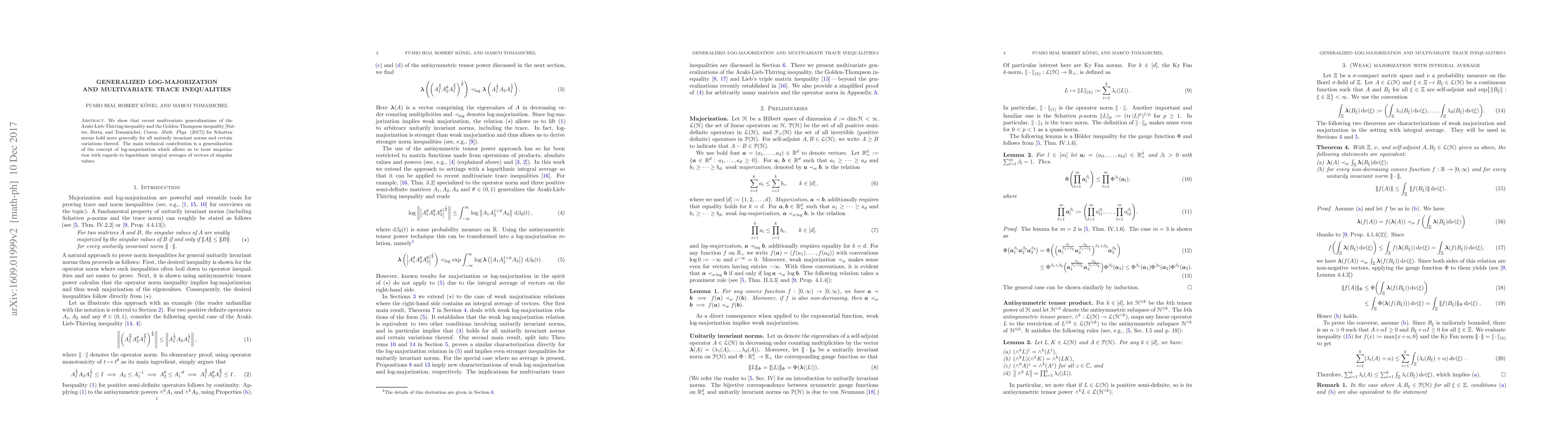 This paper generalizes the Araki-Lieb-Thirring and Golden-Thompson inequalities to all unitarily invariant norms by extending the concept of log-majorization, enabling treatment of majorization through logarithmic integral averages of singular values.