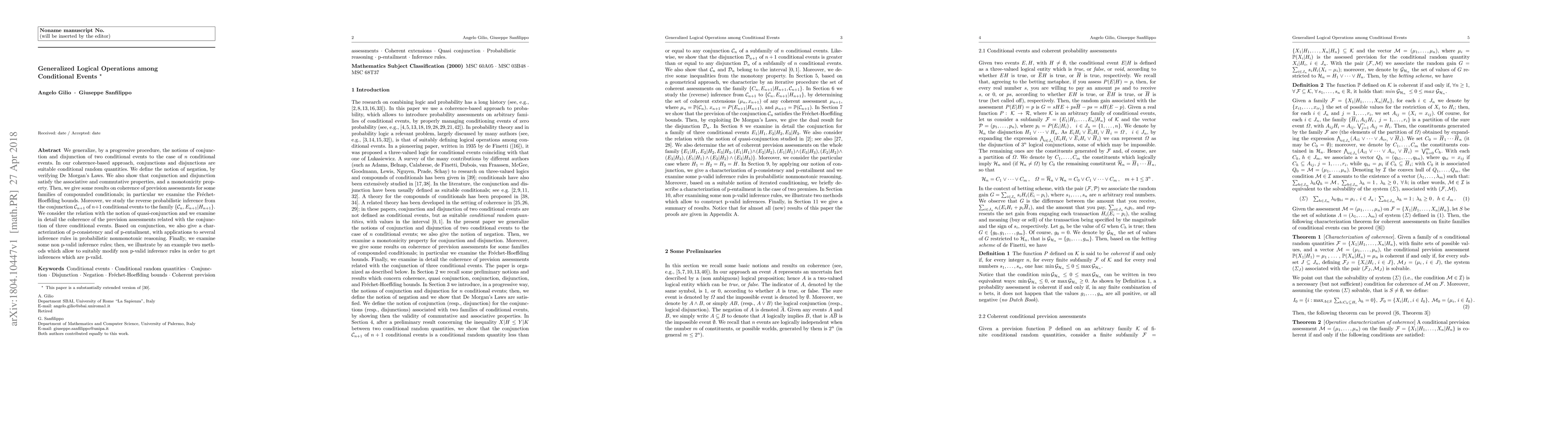 We generalize, by a progressive procedure, the notions of conjunction and disjunction of two conditional events to the case of $n$ conditional events. In our coherence-based approach, conjunctions and disjunctions are suitable conditional random quantities. We define the notion of negation, by verifying De Morgan's Laws. We also show that conjunction and disjunction satisfy the associative and commutative properties, and a monotonicity property. Then, we give some results on coherence of prevision assessments for some families of compounded conditionals; in particular we examine the Fr\'echet-Hoeffding bounds. Moreover, we study the reverse probabilistic inference from the conjunction $\mathcal{C}_{n+1}$ of $n+1$ conditional events to the family $\{\mathcal{C}_{n},E_{n+1}|H_{n+1}\}$. We consider the relation with the notion of quasi-conjunction and we examine in detail the coherence of the prevision assessments related with the conjunction of three conditional events. Based on conjunction, we also give a characterization of p-consistency and of p-entailment, with applications to several inference rules in probabilistic nonmonotonic reasoning. Finally, we examine some non p-valid inference rules; then, we illustrate by an example two methods which allow to suitably modify non p-valid inference rules in order to get inferences which are p-valid.