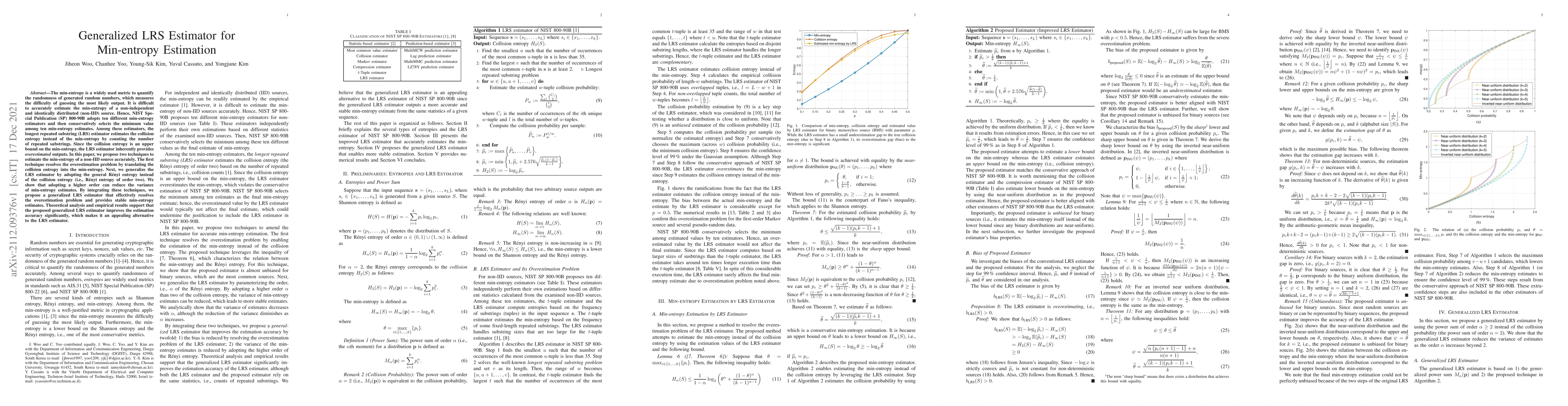 This paper proposes a generalized longest repeated substring (LRS) estimator to accurately estimate min-entropy for non-IID sources, addressing the inherent overestimation issue of the LRS estimator. The authors introduce two techniques: translating collision entropy into min-entropy and generalizing the LRS estimator using higher-order Rényi entropy, which reduces variance. The proposed estimator shows improved accuracy through theoretical analysis and empirical results.
