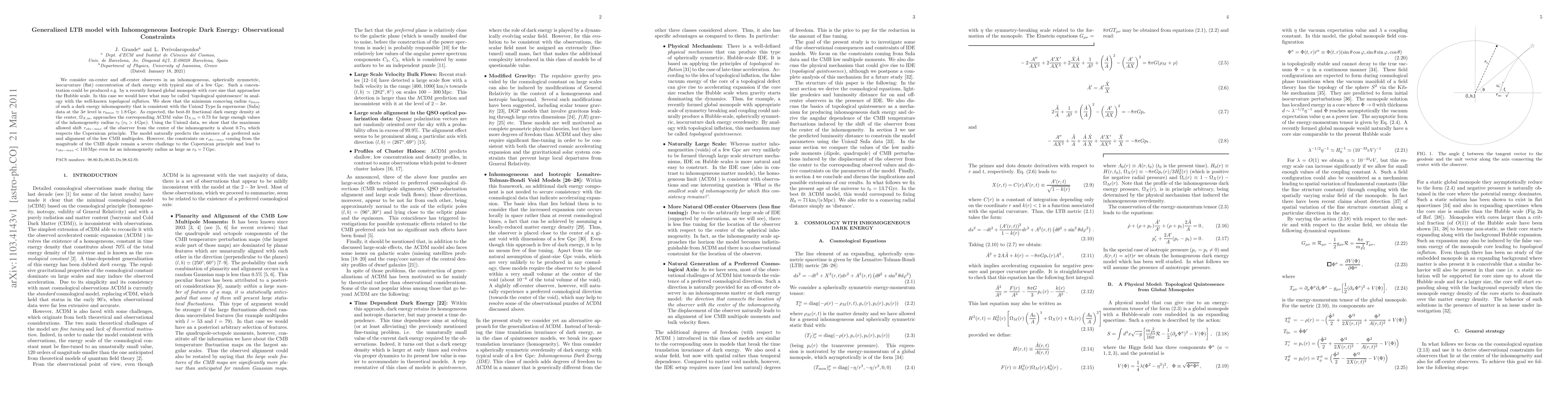We consider on-center and off-center observers in an inhomogeneous, spherically symmetric, isocurvature (flat) concentration of dark energy with typical size of a few Gpc. Such a concentration could be produced e.g. by a recently formed global monopole with core size that approaches the Hubble scale. In this case we would have what may be called `topological quintessence' in analogy with the well-known topological inflation. We show that the minimum comoving radius r_{0min} of such a dark energy inhomogeneity that is consistent with the Union2 Type Ia supernovae (SnIa) data at the 3\sigma level is r_{0min}\simeq 1.8 Gpc. As expected, the best-fit fractional dark energy density at the center, \Omega_X,in, approaches the corresponding LCDM value \Omega_X,in =0.73 for large enough values of the inhomogeneity radius r_0 (r_0 > 4Gpc). Using the Union2 data, we show that the maximum allowed shift r_{obs-max} of the observer from the center of the inhomogeneity is about 0.7 r_0 which respects the Copernican principle. The model naturally predicts the existence of a preferred axis and alignment of the low CMB multipoles. However, the constraints on r_{obs-max} coming from the magnitude of the CMB dipole remain a severe challenge to the Copernican principle and lead to r_{obs-max}< 110 Mpc even for an inhomogeneity radius as large as r_0=7 Gpc.