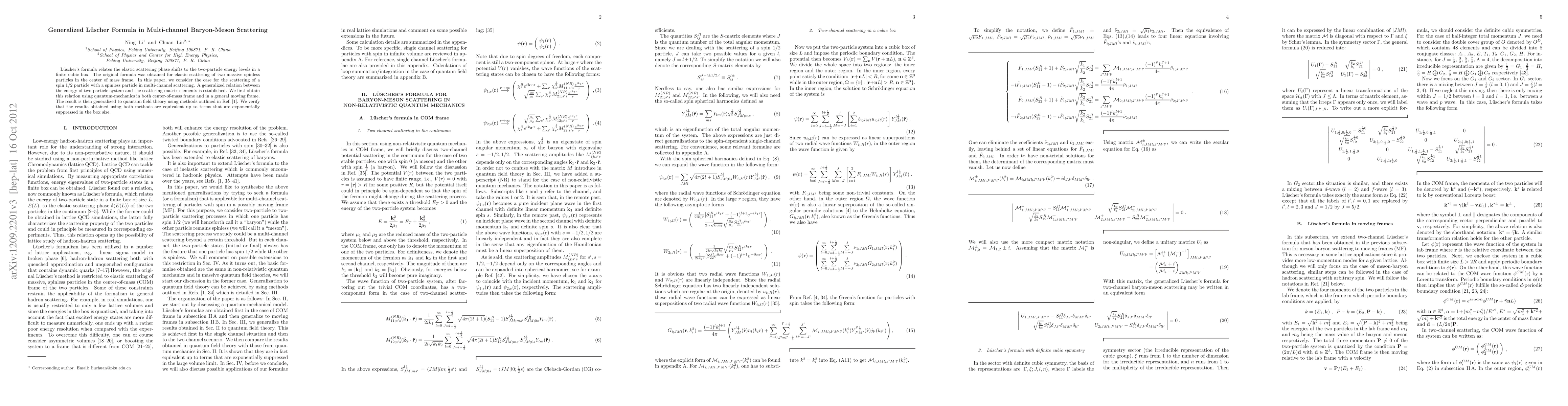 L\"uscher's formula relates the elastic scattering phase shifts to the two-particle energy levels in a finite cubic box. The original formula was obtained for elastic scattering of two massive spinless particles in the center of mass frame. In this paper, we consider the case for the scattering of a spin 1/2 particle with a spinless particle in multi-channel scattering. A generalized relation between the energy of two particle system and the scattering matrix elements is established. We first obtain this relation using quantum-mechanics in both center-of-mass frame and in a general moving frame. The result is then generalized to quantum field theory using methods outlined in Ref. \cite{Hansen:2012tf}. We verify that the results obtained using both methods are equivalent up to terms that are exponentially suppressed in the box size.