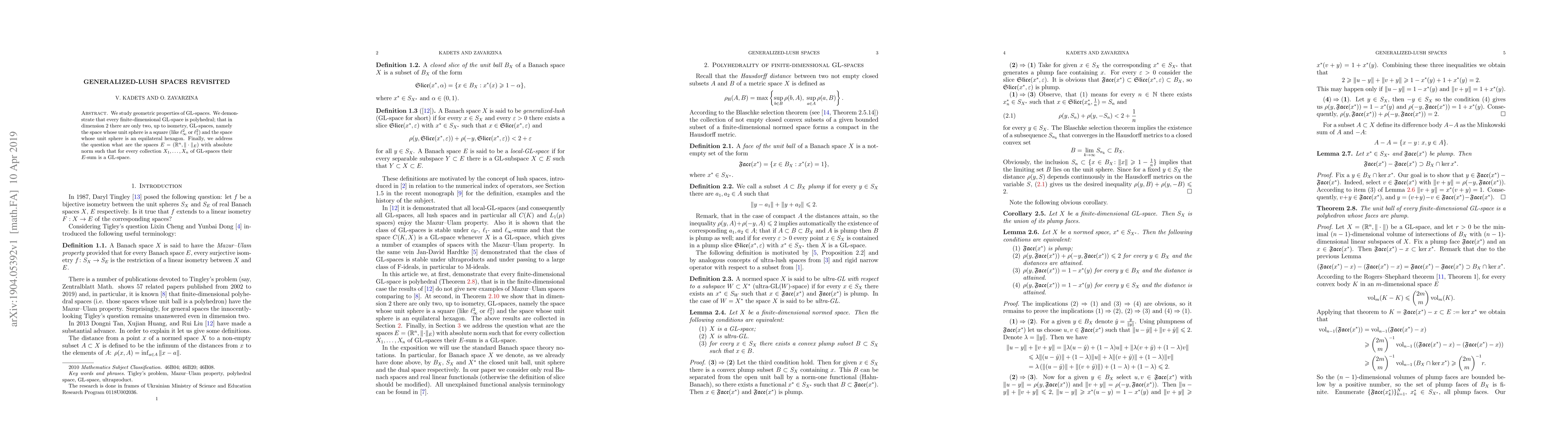 The research analyzes geometric properties of GL-spaces, demonstrating that finite-dimensional GL-spaces are polyhedral, and identifying only two two-dimensional GL-spaces up to isometry.