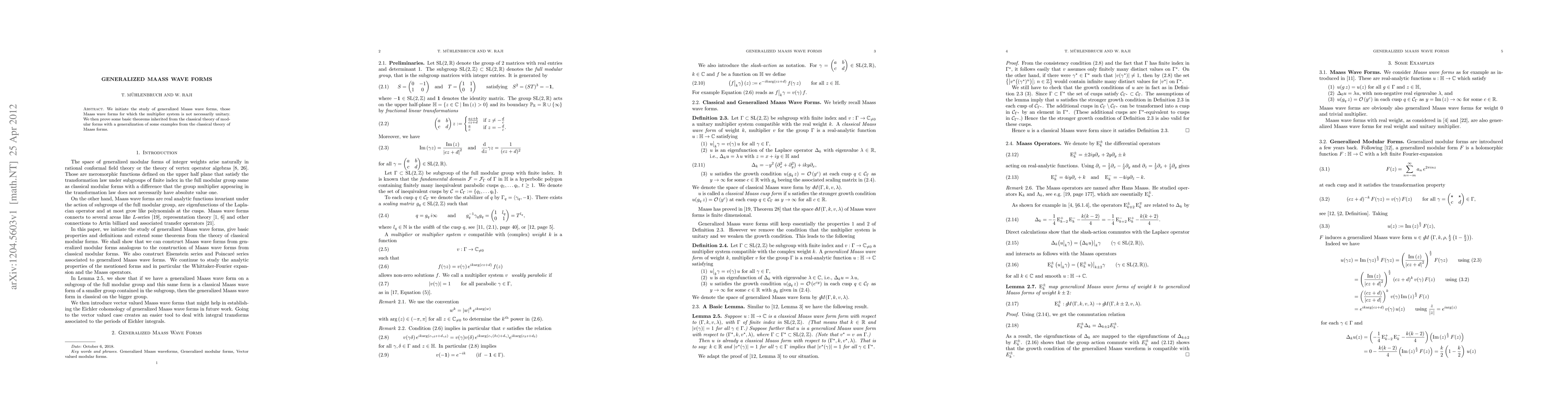 Summary: This paper explores generalized Maass wave forms, relaxing the unitary constraint on the multiplier system, and establishes foundational theorems extending classical modular form theory to this new context.