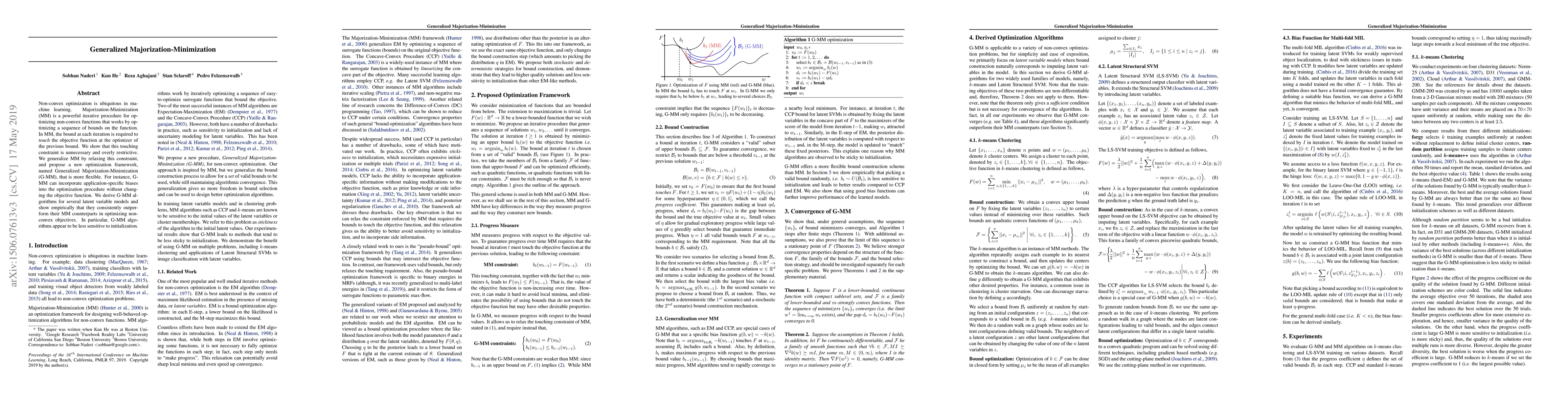 This paper proposes Generalized Majorization-Minimization (G-MM), a flexible optimization framework that relaxes the strict "touching" constraint of traditional MM, allowing for better performance and less sensitivity to initialization in non-convex optimization problems. Empirical results show G-MM outperforms standard MM in various latent variable models.