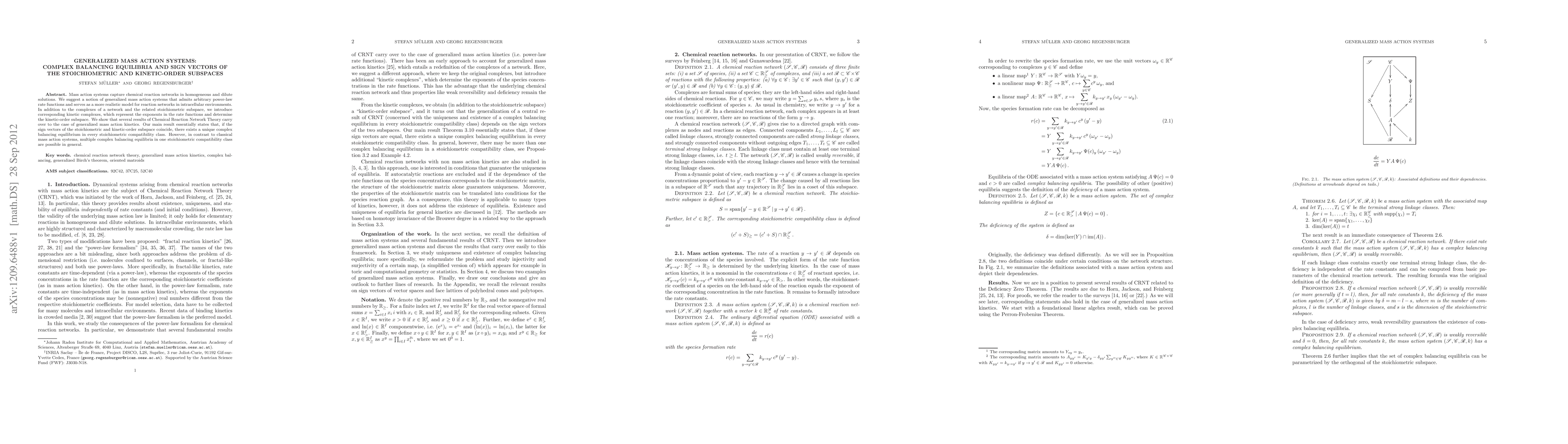 This research introduces generalized mass action systems, expanding on traditional models to better represent intracellular chemical reactions with arbitrary power-law rate functions. The key finding is that if stoichiometric and kinetic-order subspace sign vectors match, a unique positive complex balancing equilibrium exists per stoichiometric compatibility class, unlike classical mass action systems allowing multiple equilibria.