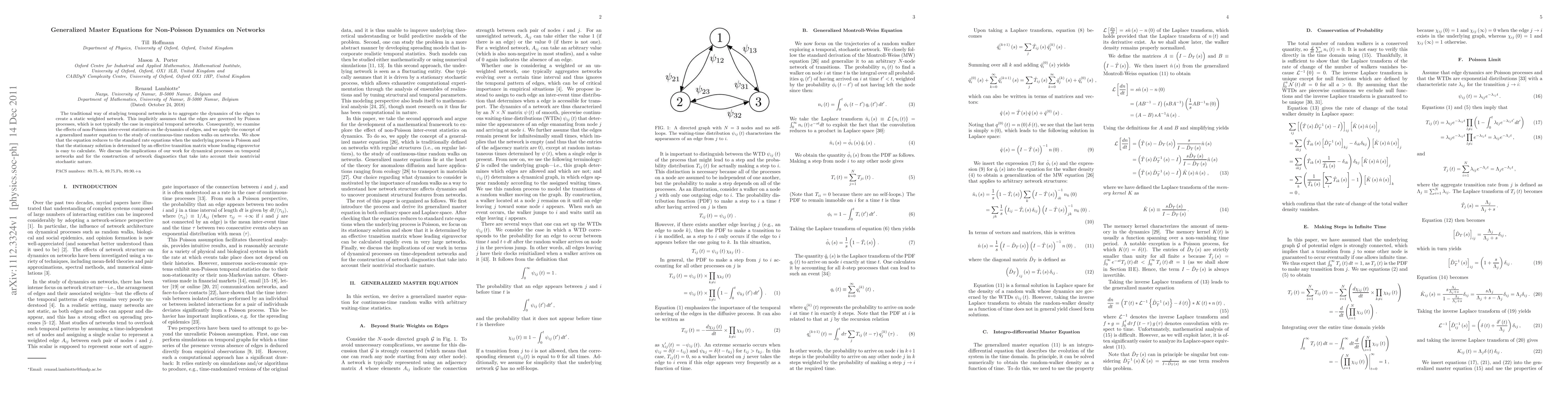 The traditional way of studying temporal networks is to aggregate the dynamics of the edges to create a static weighted network. This implicitly assumes that the edges are governed by Poisson processes, which is not typically the case in empirical temporal networks. Consequently, we examine the effects of non-Poisson inter-event statistics on the dynamics of edges, and we apply the concept of a generalized master equation to the study of continuous-time random walks on networks. We show that the equation reduces to the standard rate equations when the underlying process is Poisson and that the stationary solution is determined by an effective transition matrix whose leading eigenvector is easy to calculate. We discuss the implications of our work for dynamical processes on temporal networks and for the construction of network diagnostics that take into account their nontrivial stochastic nature.