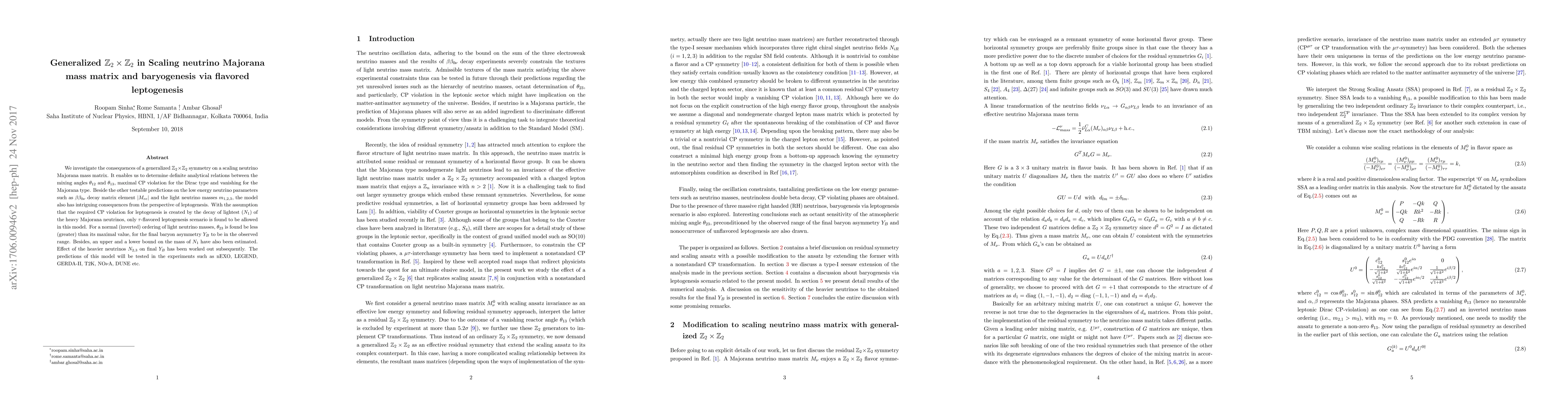 This research paper investigates the consequences of a generalized $ extit{Z}_2 imes extit{Z}_2$ symmetry on neutrino masses and leptogenesis, predicting testable signatures for future experiments such as nEXO and T2K.