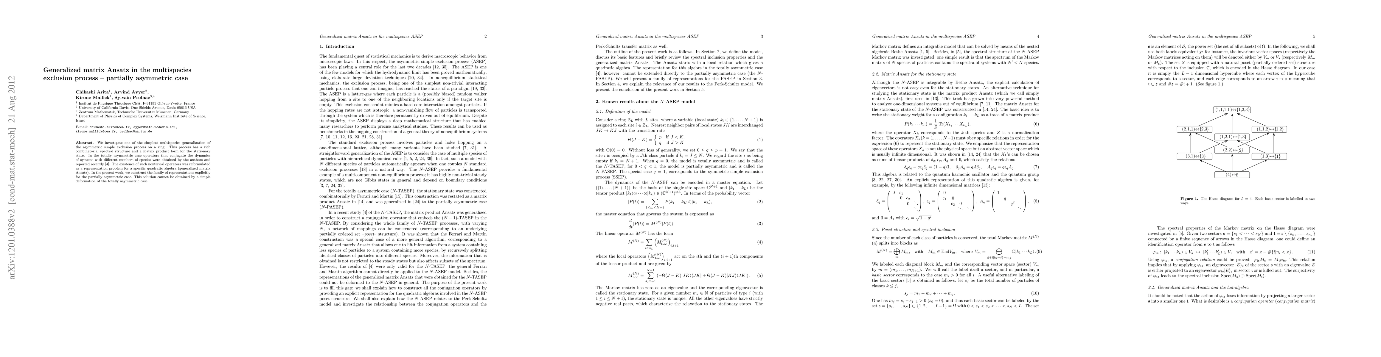 This paper explores a generalized matrix Ansatz for the partially asymmetric multispecies exclusion process on a ring, revealing its rich combinatorial spectral structure. Unlike the totally asymmetric case, the authors explicitly construct representations for this partially asymmetric scenario, which cannot be derived from a simple deformation of the fully asymmetric solution.