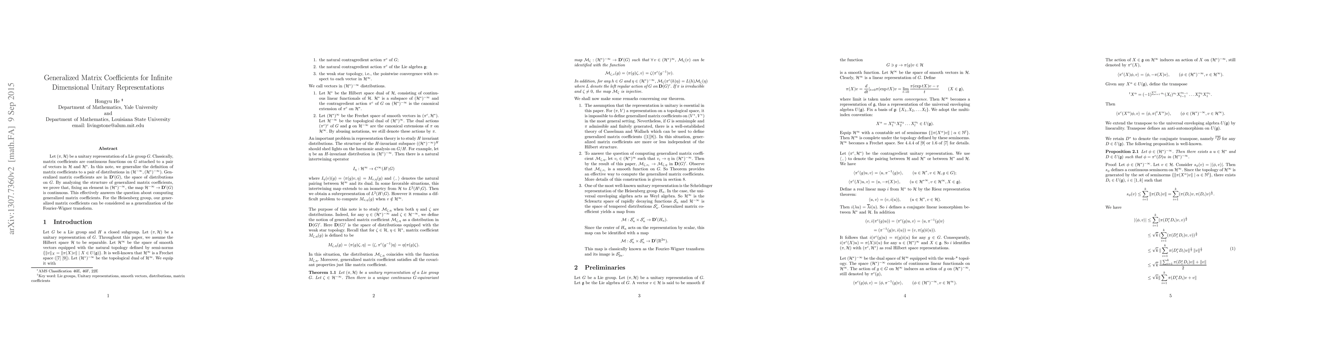 This is an introductory note concerning the distribution vectors in a unitary representation of a Lie group. We discuss the definition of matrix coefficients associated with a pair of distributions and how one can compute them. Most of the results are known to some expert, but missing in the literature.