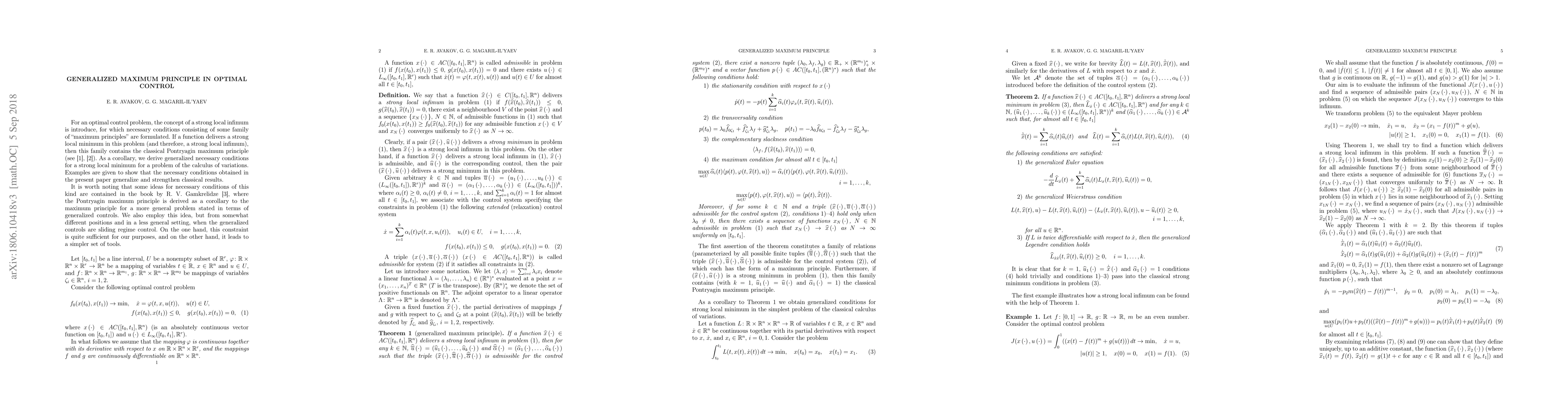 For an optimal control problem, the concept of a strong local infimum is introduce, for which necessary conditions consisting of some family of "maximum principles" are formulated. If a function delivers a strong local minimum in this problem (and therefore, a~strong local infimum), then this family contains the classical Pontryagin maximum principle. As a corollary, we derive generalized necessary conditions for a strong local minimum for a problem of the calculus of variations. Examples are given to show that the necessary conditions obtained in the present paper generalize and strengthen classical results.
