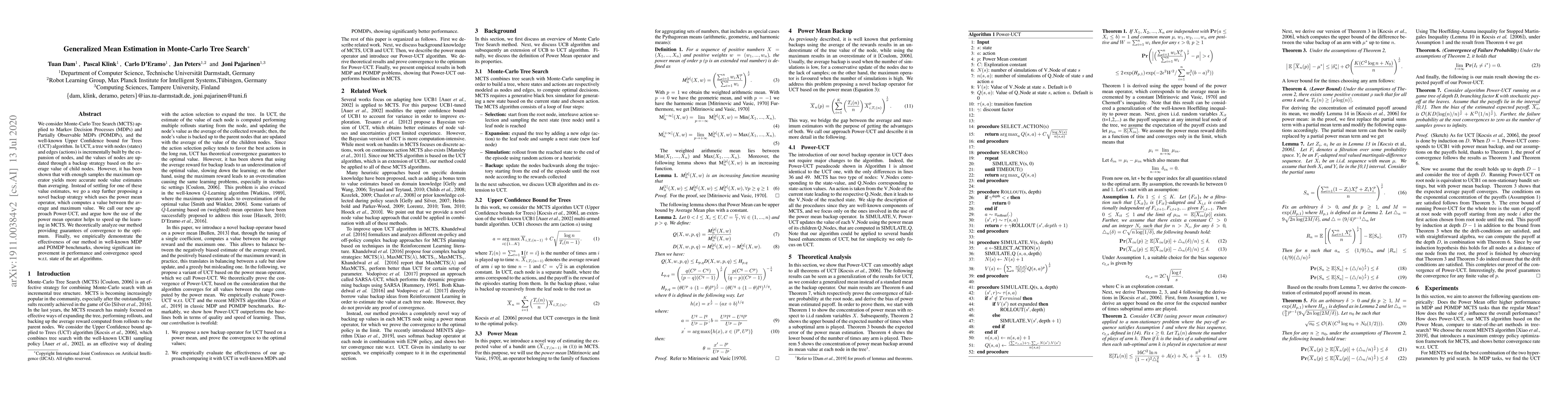 The paper introduces Power-UCT, a novel backup strategy for Monte-Carlo Tree Search (MCTS) that uses the power mean operator to estimate node values. This approach lies between averaging and maximization, potentially speeding up learning in MDPs and POMDPs. Empirical results show significant performance and convergence speed improvements over existing methods.