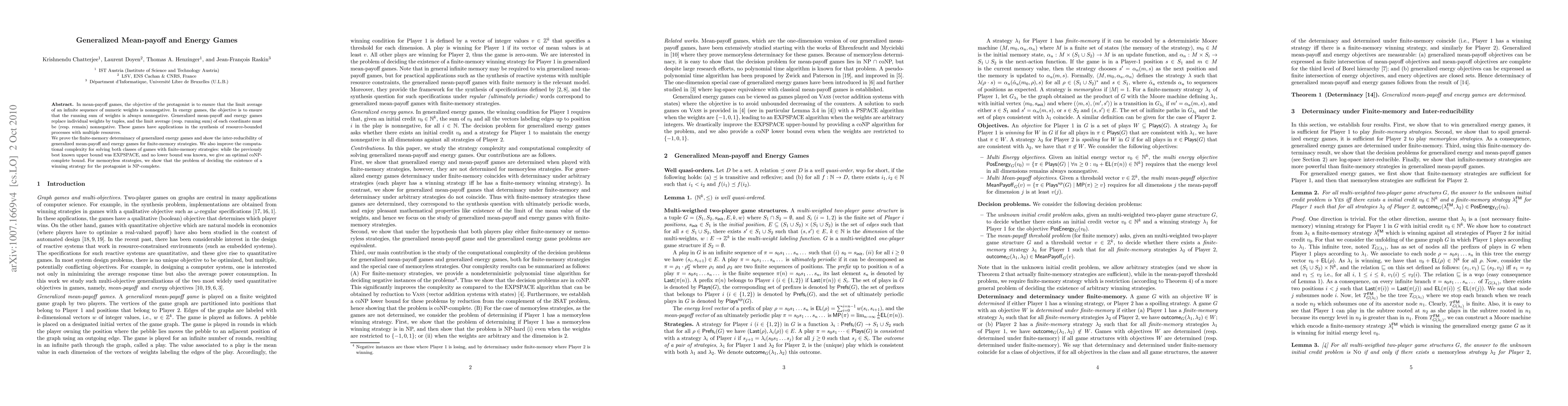 This paper studies generalized mean-payoff and energy games where objectives involve tuples of weights, requiring nonnegative limit averages or sums. It proves the finite-memory determinacy of generalized energy games and establishes inter-reducibility for finite-memory strategies, improving computational complexity to coNP-complete.