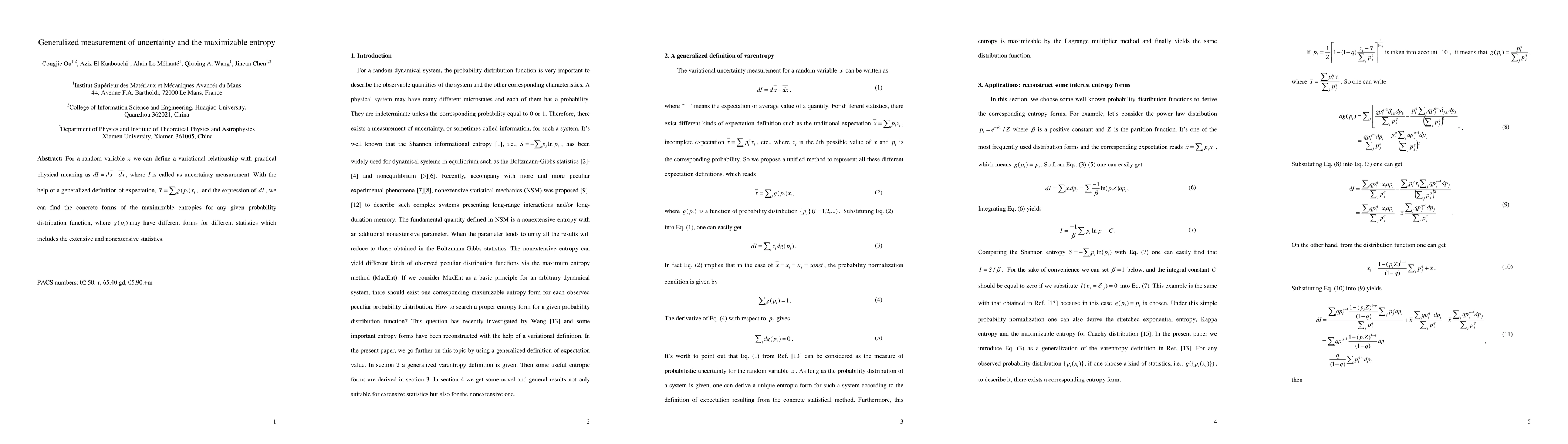 This paper introduces a generalized measurement of uncertainty, dI, defined by a variational relationship dI=dbar(x)-bar(dx), and explores its implications for the maximizable entropy across various probability distributions, including extensive and nonextensive statistics. The study derives concrete forms of maximizable entropy using a generalized expectation definition.