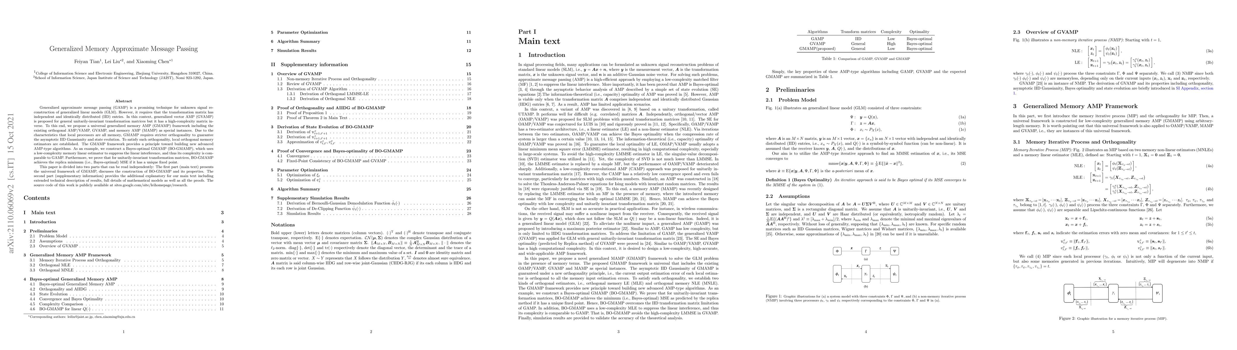 The paper proposes a universal generalized memory approximate message passing (GMAMP) framework to extend approximate message passing techniques for generalized linear models, addressing the high-complexity issue of existing methods. The GMAMP framework, including Bayes-optimal GMAMP (BO-GMAMP), achieves comparable complexity to GAMP while potentially achieving Bayes-optimal mean squared error for certain transformation matrices.