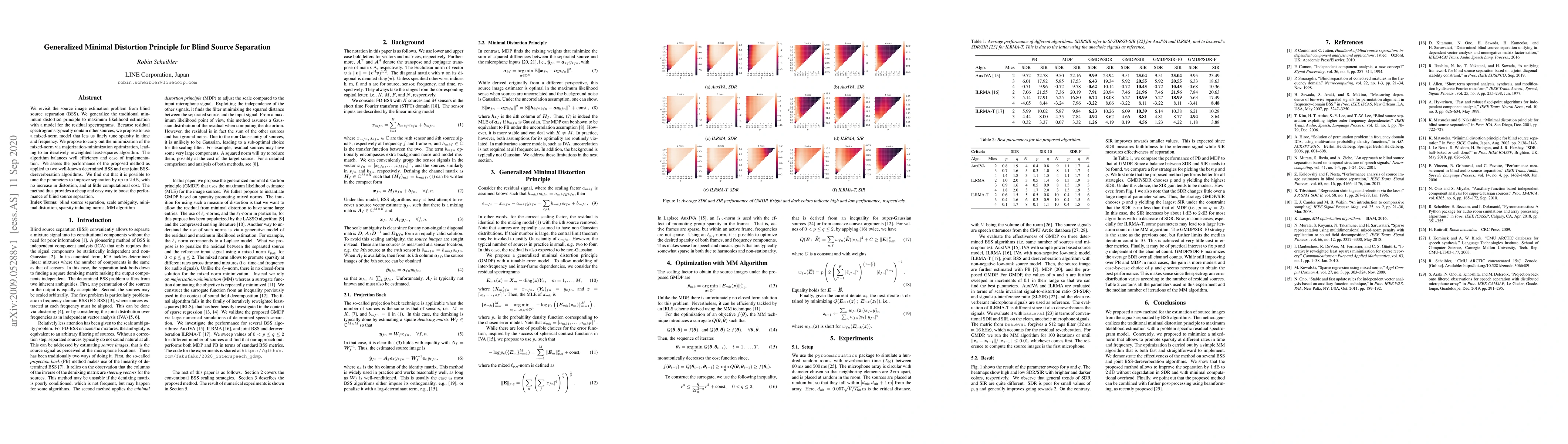 This paper generalizes the minimum distortion principle for blind source separation by employing maximum likelihood estimation with a mixed-norm model for residual spectrograms, achieving better separation performance with improved sparsity tuning. The proposed majorization-minimization optimization method yields an efficient iteratively reweighted least-squares algorithm that enhances separation by up to 2 dB without increasing distortion.