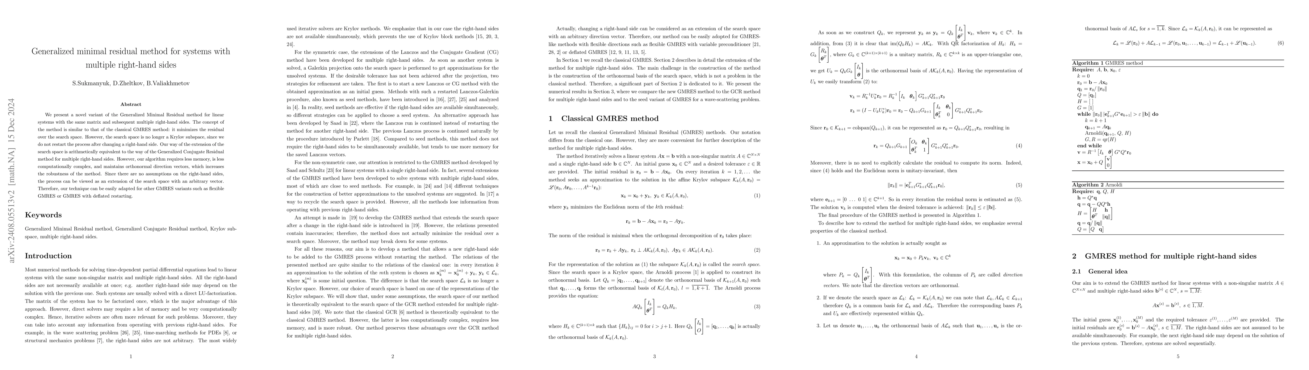 The development of a novel hybrid GMRES algorithm that combines the benefits of different methods to solve non-symmetric linear systems with multiple right-hand sides