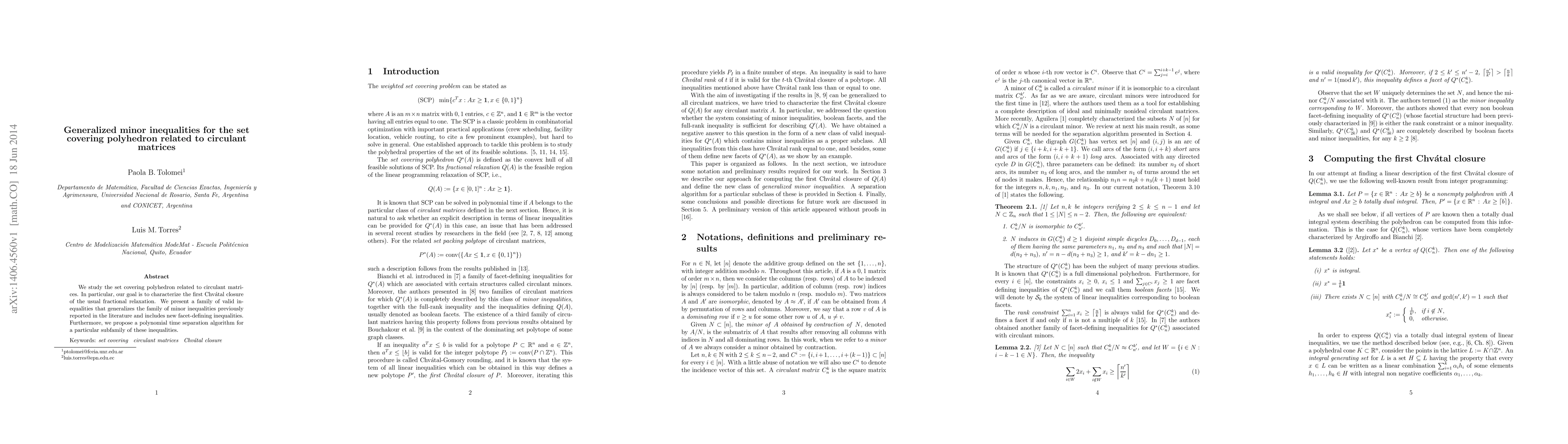 We study the set covering polyhedron related to circulant matrices. In particular, our goal is to characterize the first Chv\'atal closure of the usual fractional relaxation. We present a family of valid inequalities that generalizes the family of minor inequalities previously reported in the literature and includes new facet-defining inequalities. Furthermore, we propose a polynomial time separation algorithm for a particular subfamily of these inequalities.