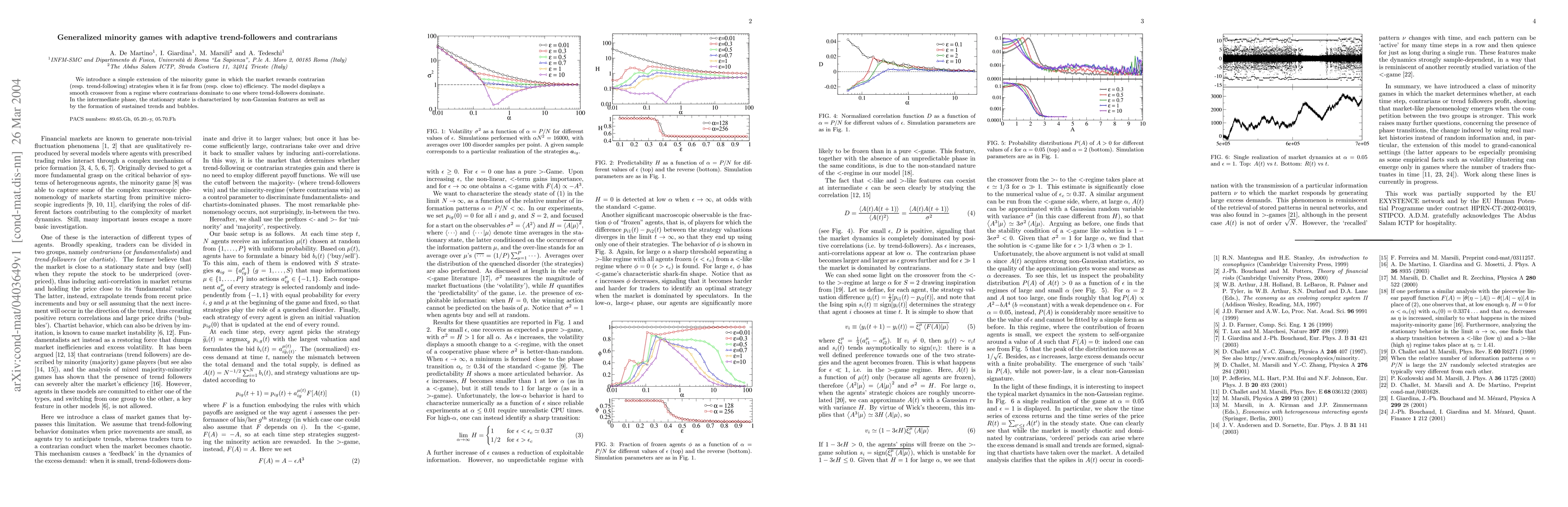 A new model of the minority game is introduced, showing a smooth transition from contrarian to trend-following strategies as efficiency is approached. The model exhibits non-Gaussian features and sustained trends during an intermediate phase.