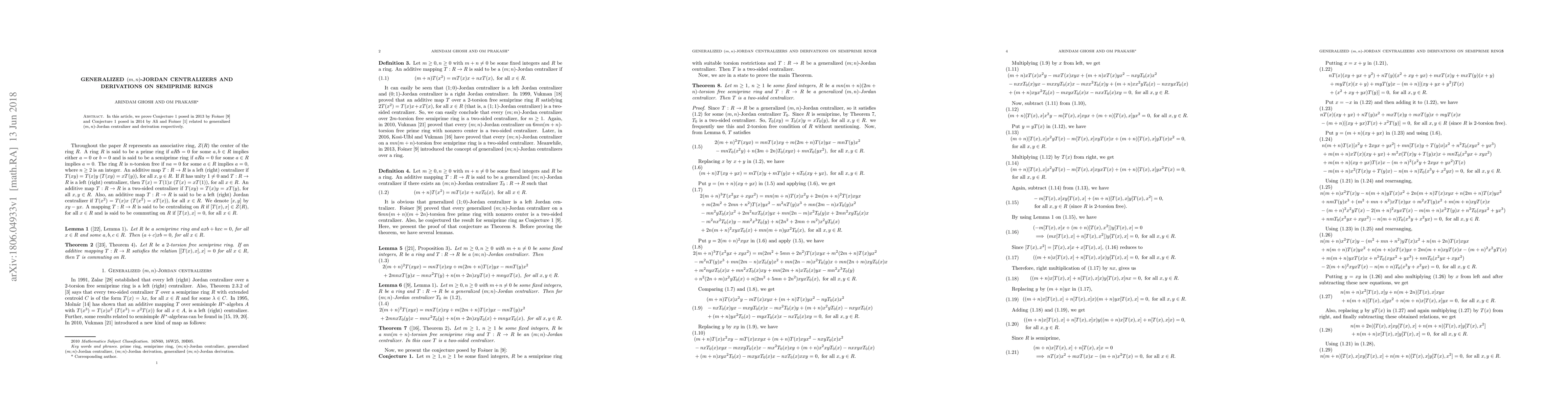 In this article, we prove Conjecture $1$ posed in 2013 by Fo$\check{s}$ner \cite{fos} and Conjecture $1$ posed in 2014 by Ali and Fo$\check{s}$ner \cite{ali} related to generalized $(m,n)$-Jordan centralizer and derivation respectively.