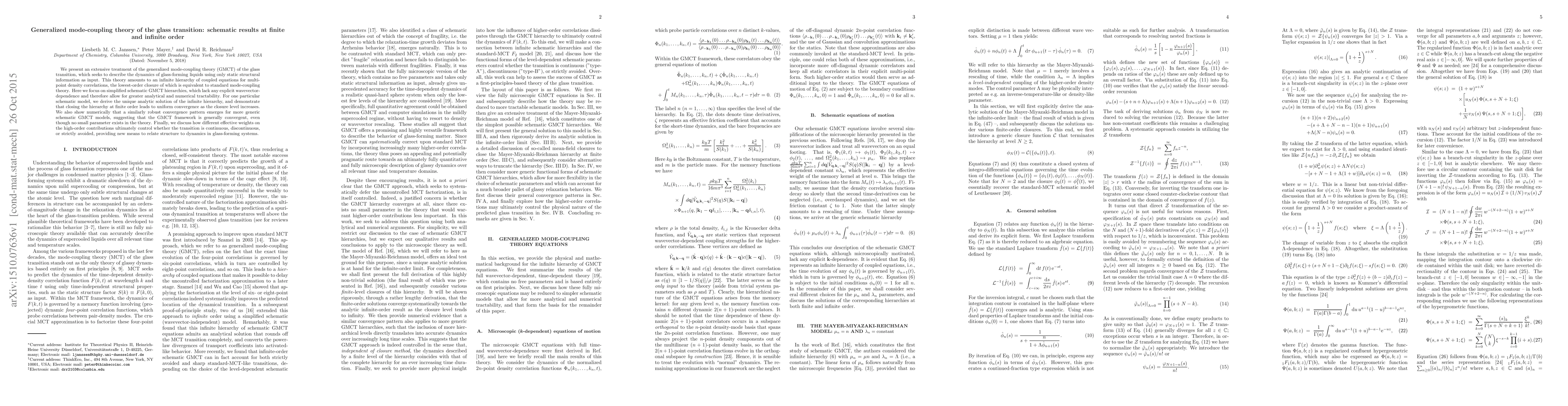 We present an extensive treatment of the generalized mode-coupling theory (GMCT) of the glass transition, which seeks to describe the dynamics of glass-forming liquids using only static structural information as input. This theory amounts to an infinite hierarchy of coupled equations for multi-point density correlations, the lowest-order closure of which is equivalent to standard mode-coupling theory. Here we focus on simplified schematic GMCT hierarchies, which lack any explicit wavevector-dependence and therefore allow for greater analytical and numerical tractability. For one particular schematic model, we derive the unique analytic solution of the infinite hierarchy, and demonstrate that closing the hierarchy at finite order leads to uniform convergence as the closure level increases. We also show numerically that a similarly robust convergence pattern emerges for more generic schematic GMCT models, suggesting that the GMCT framework is generally convergent, even though no small parameter exists in the theory. Finally, we discuss how different effective weights on the high-order contributions ultimately control whether the transition is continuous, discontinuous, or strictly avoided, providing new means to relate structure to dynamics in glass-forming systems.