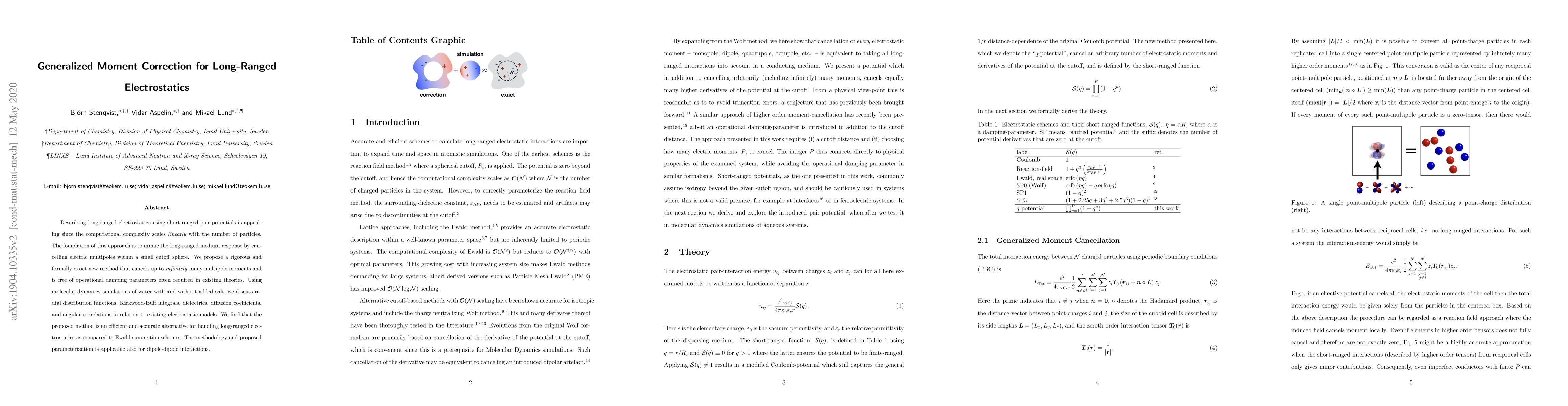 The paper introduces a novel method for computing long-ranged electrostatics that cancels electric multipole moments without damping parameters, proving efficient and accurate through molecular dynamics simulations of water. This approach offers an effective alternative to traditional Ewald summation and extends to dipole-dipole interactions.