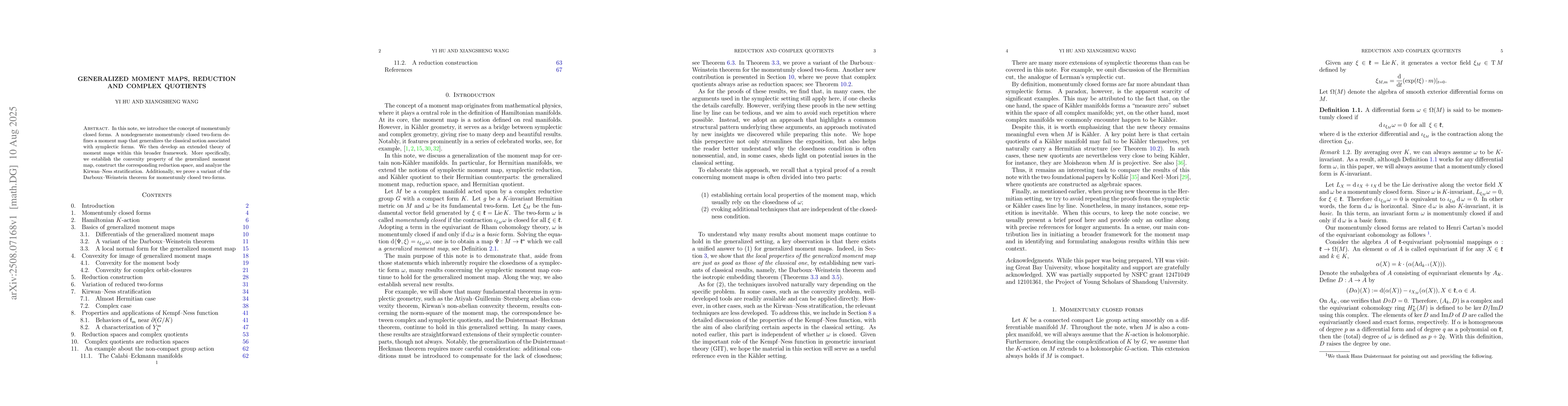 The paper presents a novel generalization of moment maps, extending classical symplectic theory to a broader class of forms and actions, offering new insights into moment map theory and reduction processes.