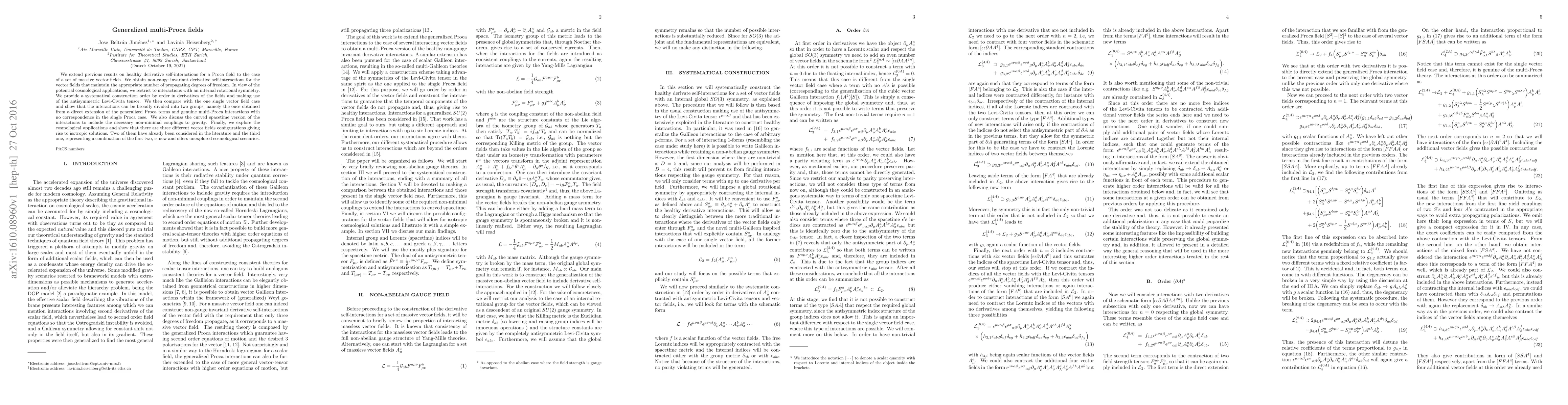 This paper extends the concept of Proca fields to generalized multi-Proca fields, introducing non-gauge invariant derivative self-interactions for massive vector fields while preserving the correct number of degrees of freedom. The study also explores cosmological applications and reveals three vector field configurations, including a novel combination offering new cosmological scenarios.