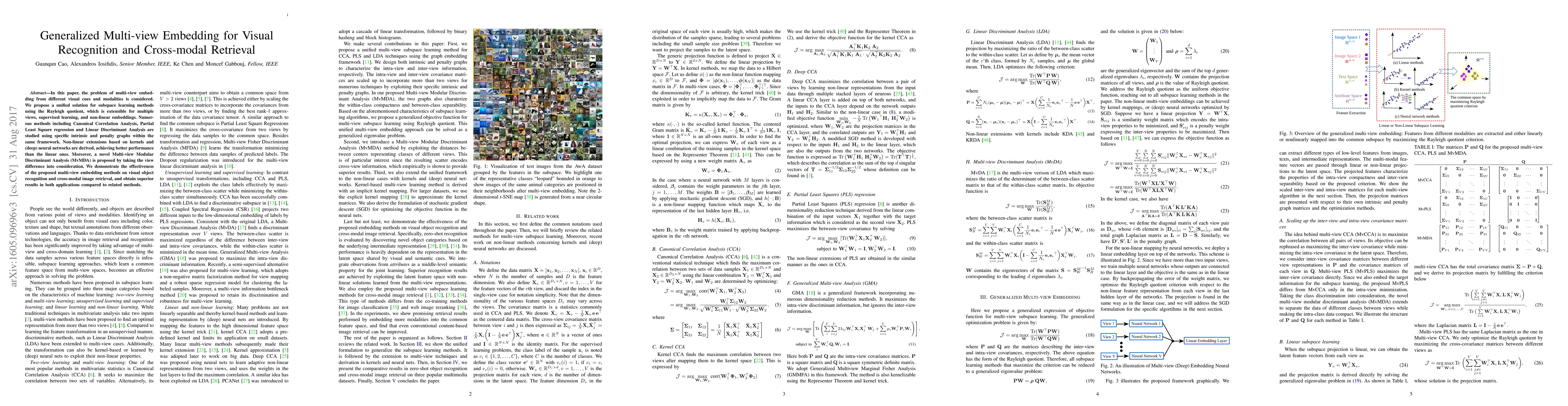 This paper proposes a generalized multi-view embedding framework using the Rayleigh quotient for subspace learning, extending methods like Canonical Correlation Analysis and Linear Discriminant Analysis. The approach achieves superior results in visual object recognition and cross-modal image retrieval compared to existing techniques.