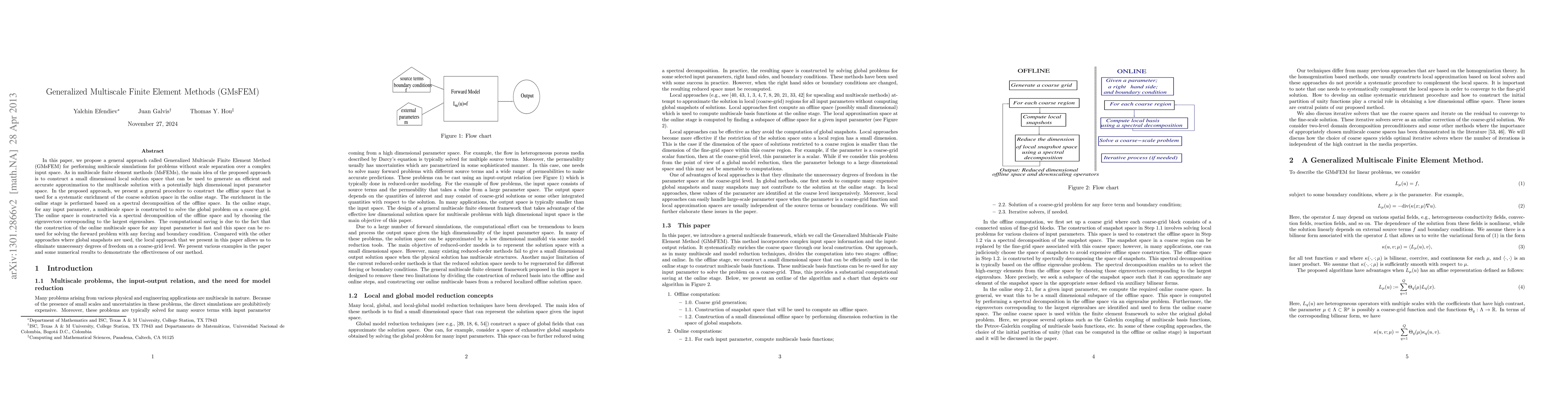 The paper proposes the Generalized Multiscale Finite Element Method (GMsFEM) for multiscale simulations without scale separation, constructing an efficient local solution space for accurate approximations. The method uses a spectral decomposition of offline spaces to enrich the coarse solution space, allowing for fast reuse and computational savings by eliminating unnecessary degrees of freedom.