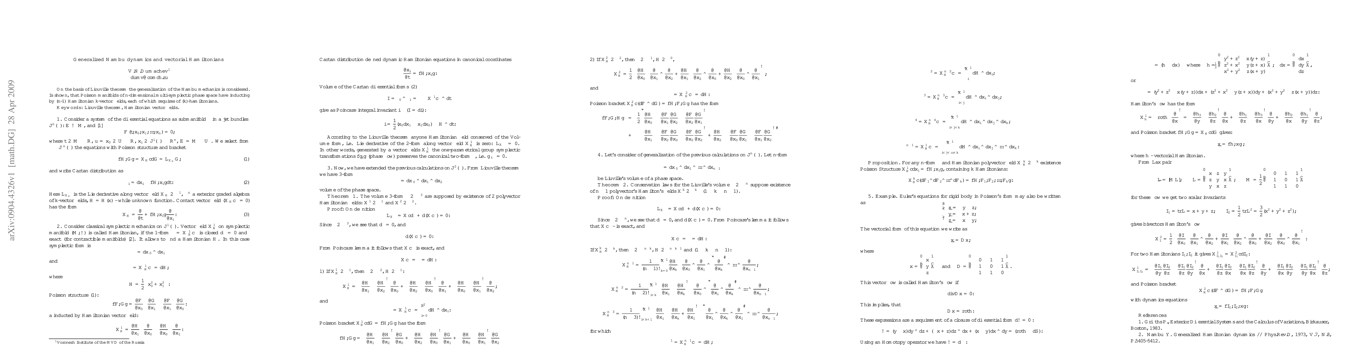 The research introduces a new mathematical framework for generalized Nambu dynamics and vectorial Hamiltonians.