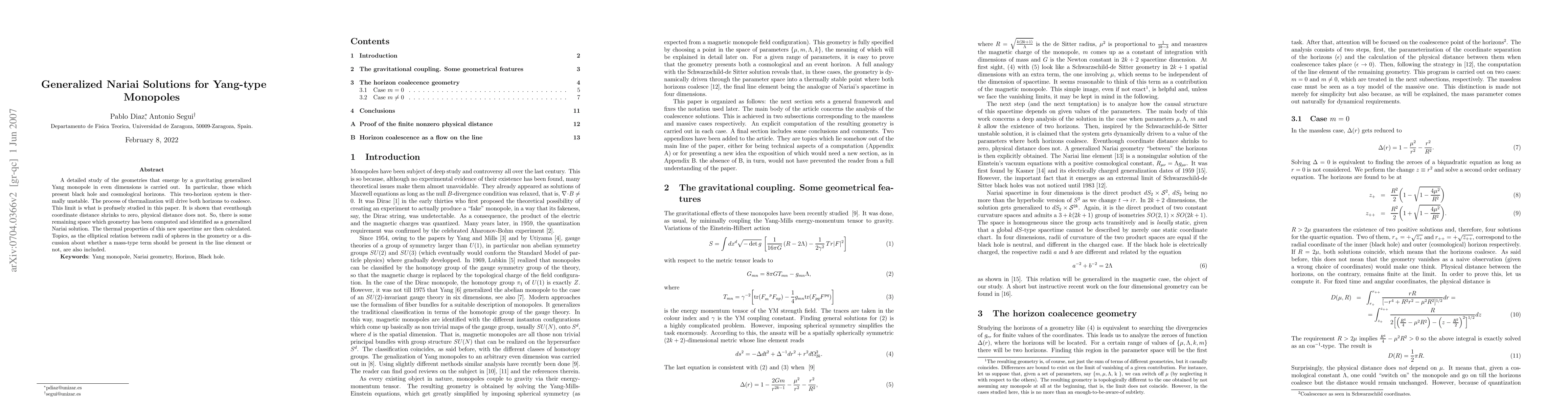 A detailed study of the geometries that emerge by a gravitating generalized Yang monopole in even dimensions is carried out. In particular, those which present black hole and cosmological horizons. This two-horizon system is thermally unstable. The process of thermalization will drive both horizons to coalesce. This limit is what is profusely studied in this paper. It is shown that eventhough coordinate distance shrinks to zero, physical distance does not. So, there is some remaining space which geometry has been computed and identified as a generalized Nariai solution. The thermal properties of this new spacetime are then calculated. Topics, as the elliptical relation between radii of spheres in the geometry or a discussion about whether a mass-type term should be present in the line element or not, are also included.
