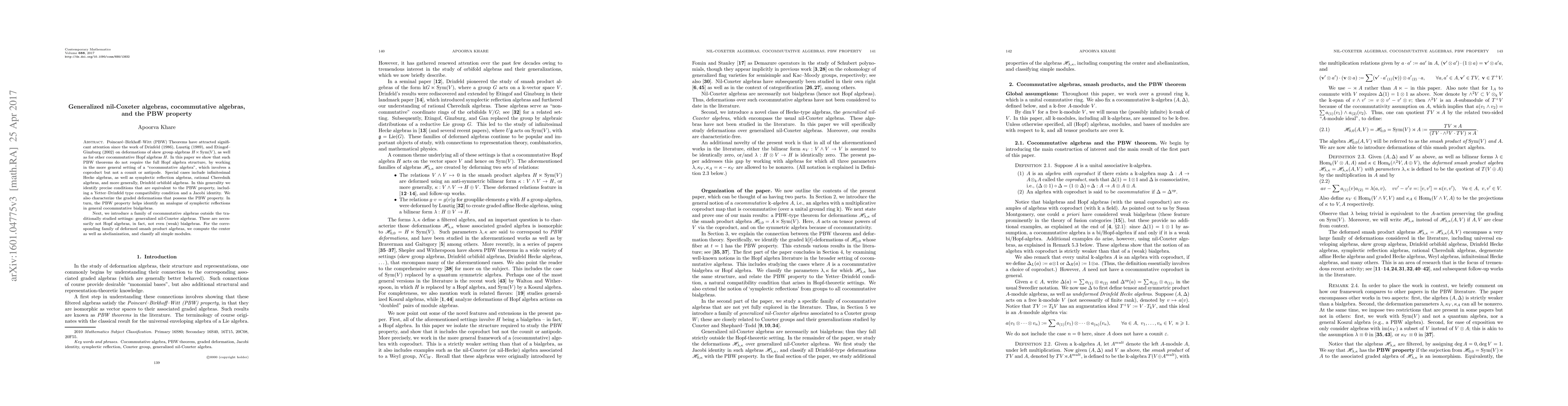 This paper demonstrates that the PBW property holds in cocommutative algebras, not just Hopf algebras, and identifies conditions like a Yetter-Drinfeld compatibility and Jacobi identity. It introduces generalized nil-Coxeter algebras as a novel cocommutative algebra type, computes their center and abelianization, and classifies their simple modules.
