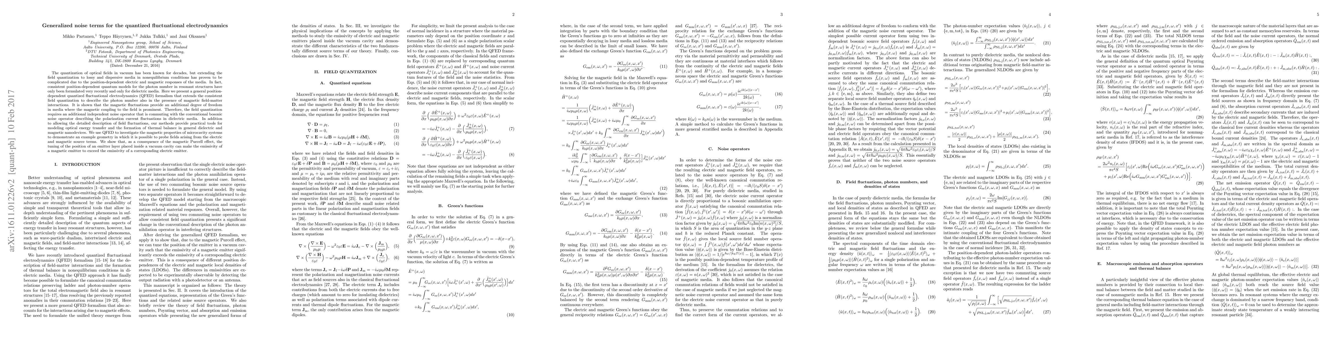 The quantization of optical fields in vacuum has been known for decades, but extending the field quantization to lossy and dispersive media in nonequilibrium conditions has proven to be complicated due to the position-dependent electric and magnetic responses of the media. In fact, consistent position-dependent quantum models for the photon number in resonant structures have only been formulated very recently and only for dielectric media. Here we present a general position-dependent quantized fluctuational electrodynamics (QFED) formalism that extends the consistent field quantization to describe the photon number also in the presence of magnetic field-matter interactions. It is shown that the magnetic fluctuations provide an additional degree of freedom in media where the magnetic coupling to the field is prominent. Therefore, the field quantization requires an additional independent noise operator that is commuting with the conventional bosonic noise operator describing the polarization current fluctuations in dielectric media. In addition to allowing the detailed description of field fluctuations, our methods provide practical tools for modeling optical energy transfer and the formation of thermal balance in general dielectric and magnetic nanodevices. We use the QFED to investigate the magnetic properties of microcavity systems to demonstrate an example geometry in which it is possible to probe fields arising from the electric and magnetic source terms. We show that, as a consequence of the magnetic Purcell effect, the tuning of the position of an emitter layer placed inside a vacuum cavity can make the emissivity of a magnetic emitter to exceed the emissivity of a corresponding electric emitter.