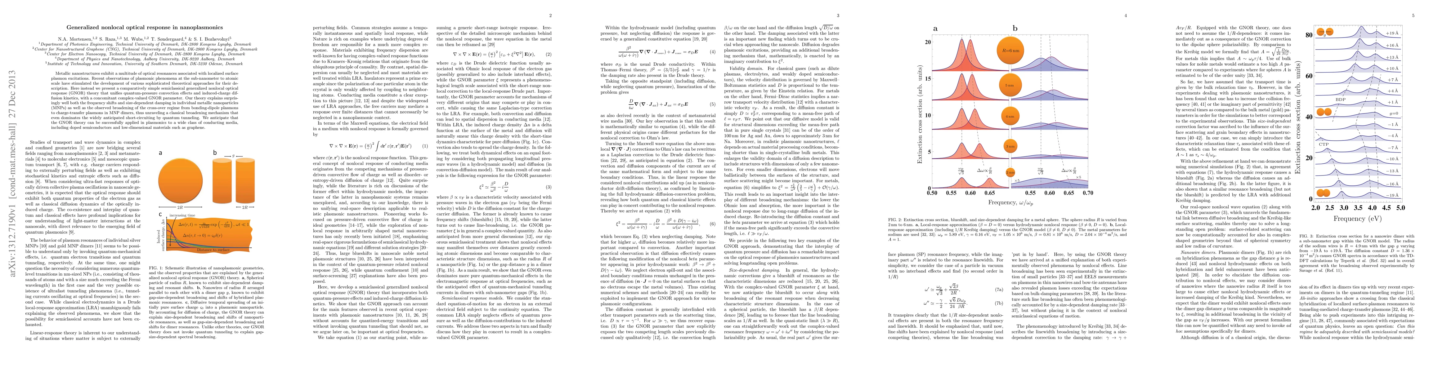 This paper introduces a simple semiclassical theory for generalized nonlocal optical response in nanoplasmonics, which effectively explains frequency shifts, size-dependent damping, and the broadening of plasmonic cross-over regimes in metallic nanoparticles, surpassing classical tunneling effects. The theory is anticipated to be broadly applicable to various conducting media.