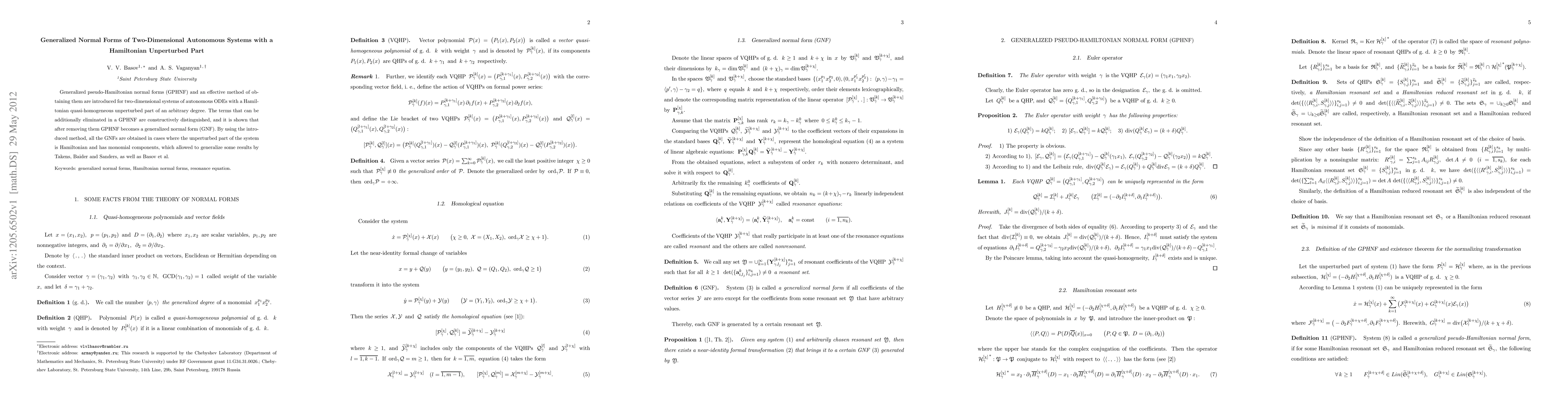 Researchers introduce generalized pseudo-Hamiltonian normal forms for two-dimensional autonomous systems with a Hamiltonian unperturbed part, allowing for the elimination of extra terms and generalizing previous results in the field.