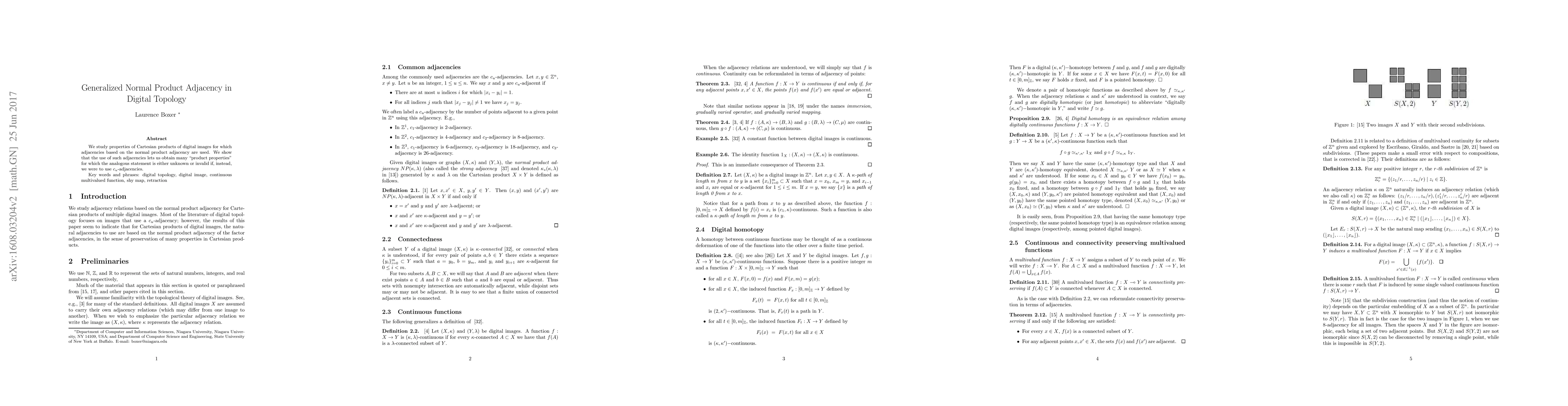 We study properties of Cartesian products of digital images for which adjacencies based on the normal product adjacency are used. We show that the use of such adjacencies lets us obtain many "product properties" for which the analogous statement is either unknown or invalid if, instead, we were to use $c_u$-adjacencies.