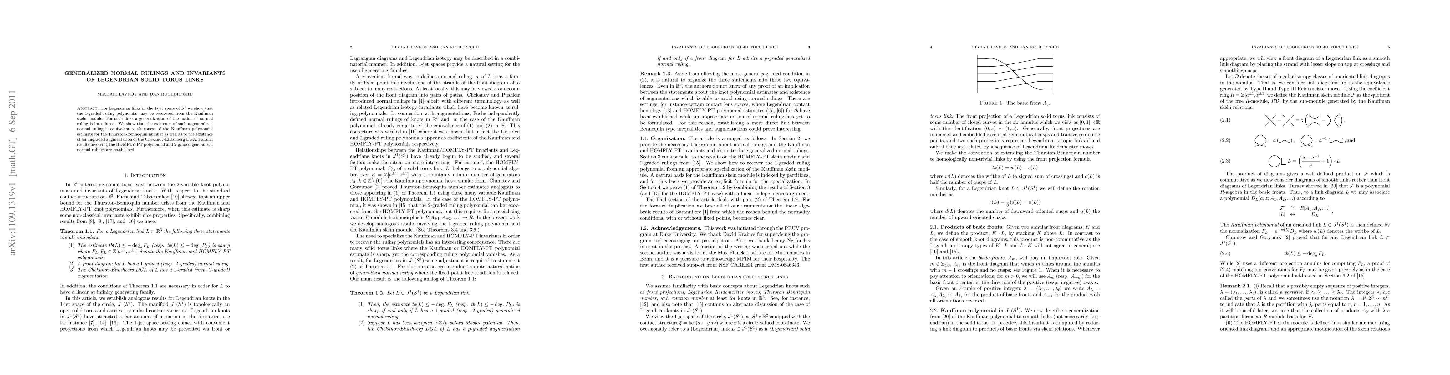 For Legendrian links in the 1-jet space of $S^1$ we show that the 1-graded ruling polynomial may be recovered from the Kauffman skein module. For such links a generalization of the notion of normal ruling is introduced. We show that the existence of such a generalized normal ruling is equivalent to sharpness of the Kauffman polynomial estimate for the Thurston-Bennequin number as well as to the existence of an ungraded augmentation of the Chekanov-Eliashberg DGA. Parallel results involving the HOMFLY-PT polynomial and 2-graded generalized normal rulings are established.
