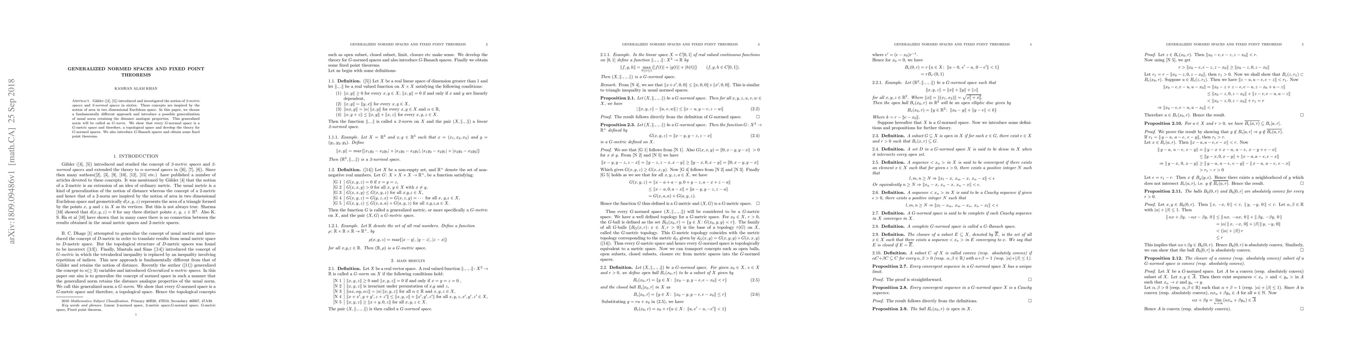 G\"ahler ([4],[5]) introduced and investigated the notion of 2-metric spaces and 2-normed spaces in sixties. These concepts are inspired by the notion of area in two dimensional Euclidean space. In this paper, we choose a fundamentally different approach and introduce a possible generalization of usual norm retaining the distance analogue properties. This generalized norm will be called as $G$-norm. We show that every $G$-normed space is a $G$-metric space and therefore, a topological space and develop the theory for $G$-normed spaces. We also introduce $G$-Banach spaces and obtain some fixed point theorems.