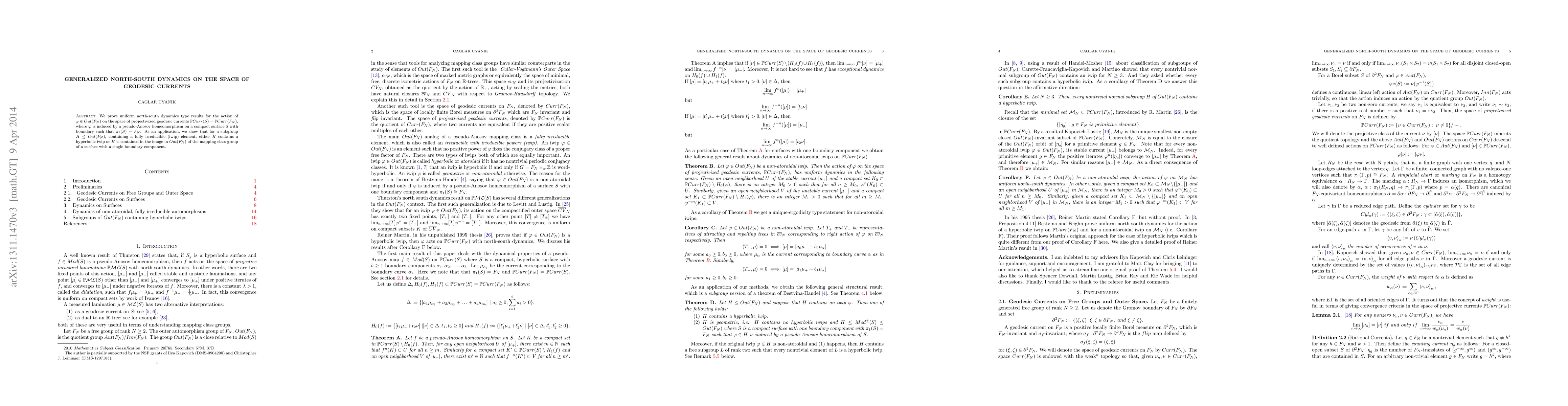 Researchers prove uniform north-south dynamics for pseudo-Anosov homeomorphisms on compact surfaces with boundary, leading to a new classification of subgroups in the outgroup of free groups.