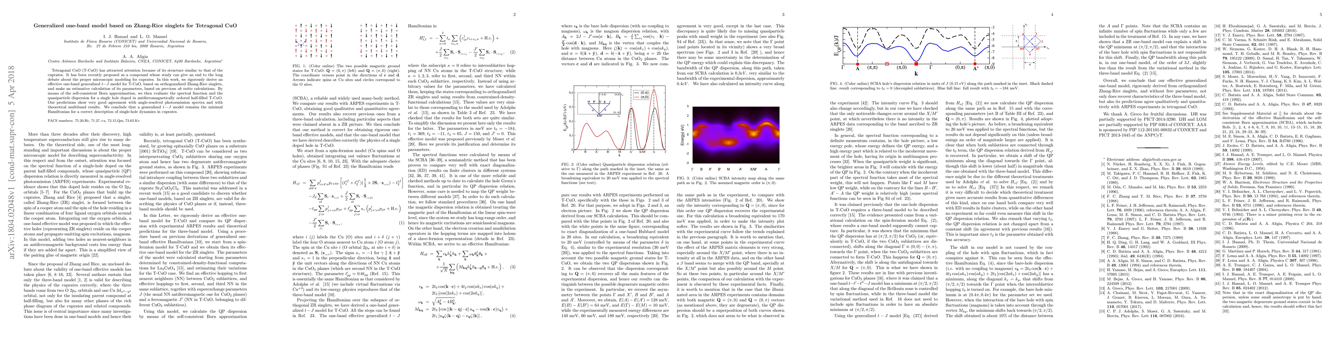 This paper derives an effective one-band generalized $t\!-\!J$ model for tetragonal CuO, based on Zhang-Rice singlets, and predicts its spectral function and quasiparticle dispersion. The results align well with experimental data and support the generalized $t\!-\!J$ model as a minimal Hamiltonian for describing single-hole dynamics in cuprates.