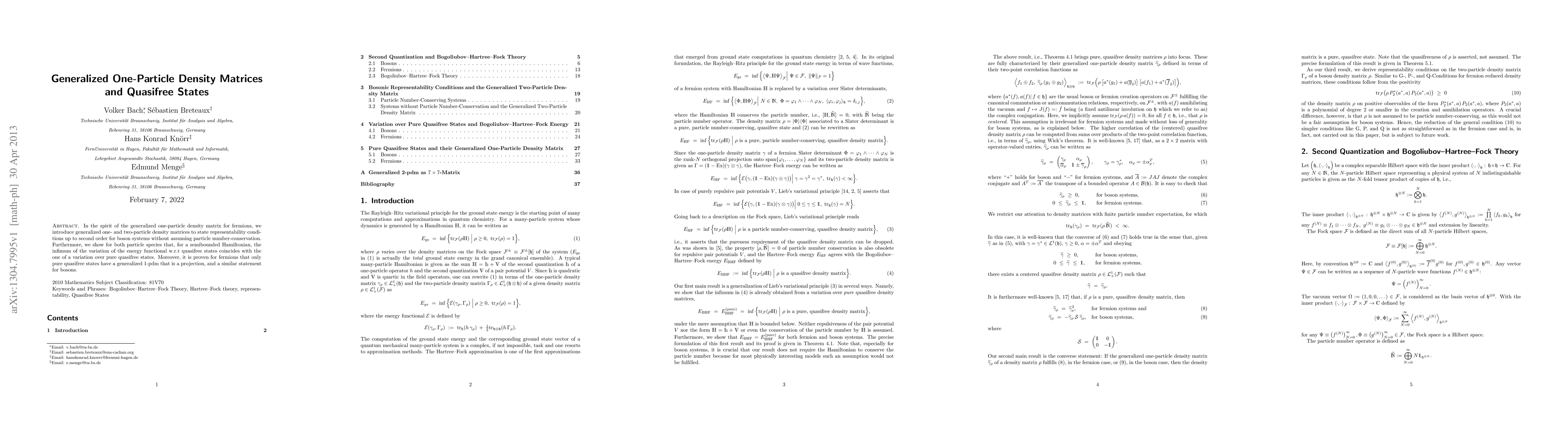 In the spirit of the generalized one-particle density matrix for fermions, we introduce generalized one- and two-particle density matrices to state representability conditions up to second order for boson systems without assuming particle number-conservation. Furthermore, we show for both particle species that, for a semibounded Hamiltonian, the in?mum of the variation of the energy functional w.r.t quasifree states coincides with the one of a variation over pure quasifree states. Moreover, it is proven for fermions that only pure quasifree states have a generalized 1-pdm that is a projection, and a similar statement for bosons.