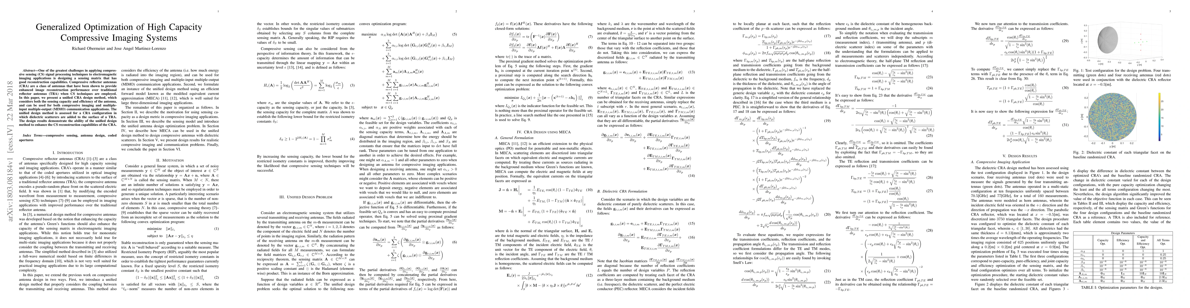 This paper introduces a unified design method for compressive reflector antennas (CRA) that optimizes both sensing capacity and efficiency for compressive imaging and MIMO communication. The method enhances CRA reconstruction performance by adding dielectric scatterers to a traditional reflector antenna, demonstrating improved CS reconstruction capabilities.