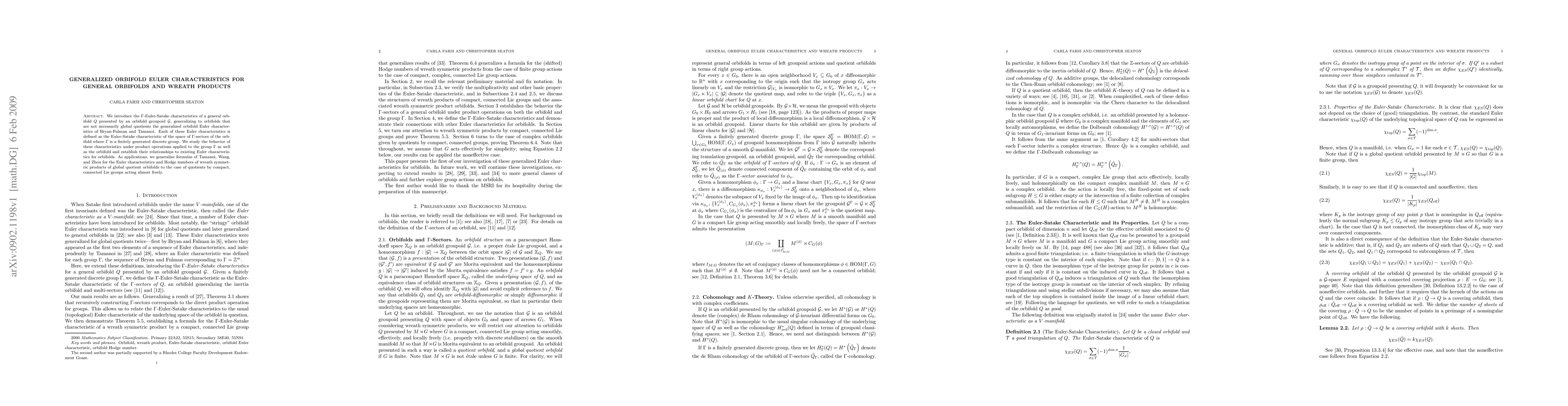 This paper introduces $\Gamma$-Euler-Satake characteristics for general orbifolds, extending existing orbifold Euler characteristics to broader contexts. It examines their behavior under product operations and establishes connections to existing orbifold Euler characteristics, with applications to wreath symmetric products of orbifolds.