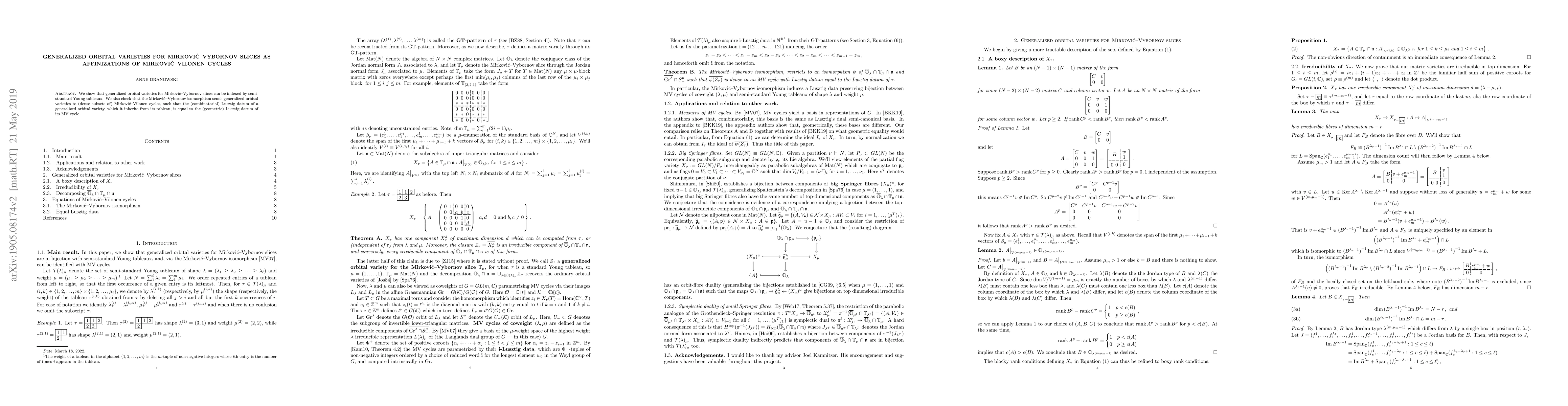 This paper demonstrates that generalized orbital varieties associated with Mirkovic-Vybornov slices can be indexed by semi-standard Young tableaux and establishes a correspondence between these varieties and Mirkovic-Vilonen cycles, preserving the Lusztig datum.