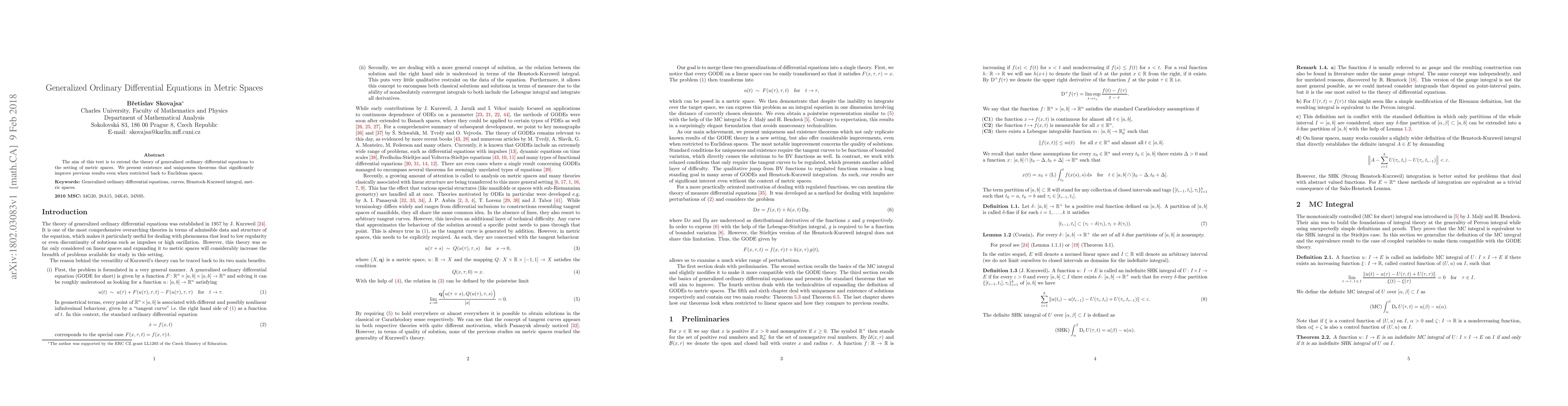 Summary: This paper extends the theory of generalized ordinary differential equations to metric spaces, presenting enhanced existence and uniqueness theorems that outperform prior results, even within Euclidean spaces.