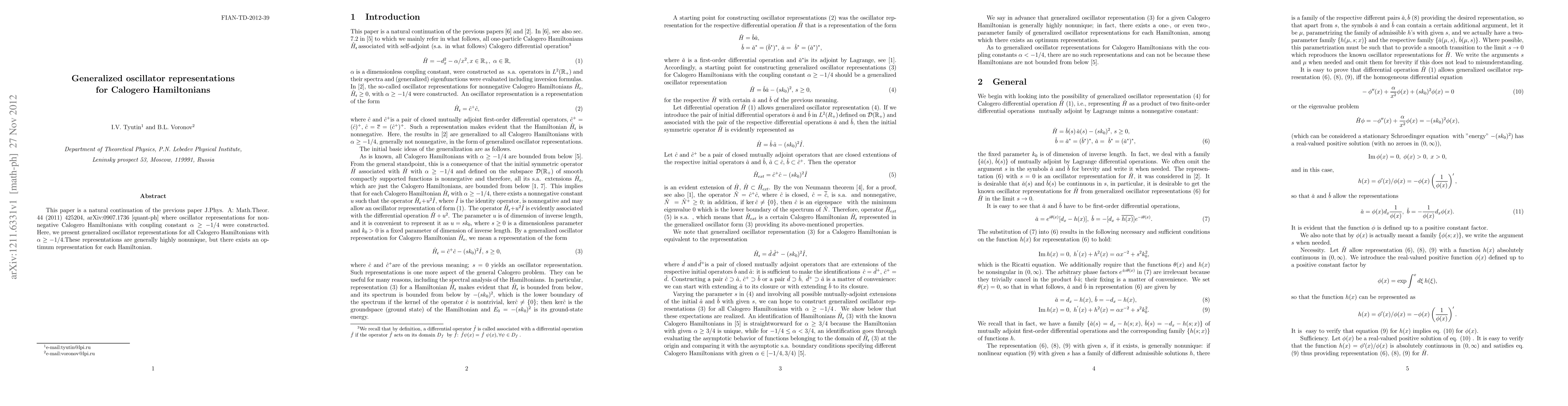 Researchers developed generalized oscillator representations for Calogero Hamiltonians with coupling constant \alpha\geq-1/4, enabling a broader understanding of these quantum systems.