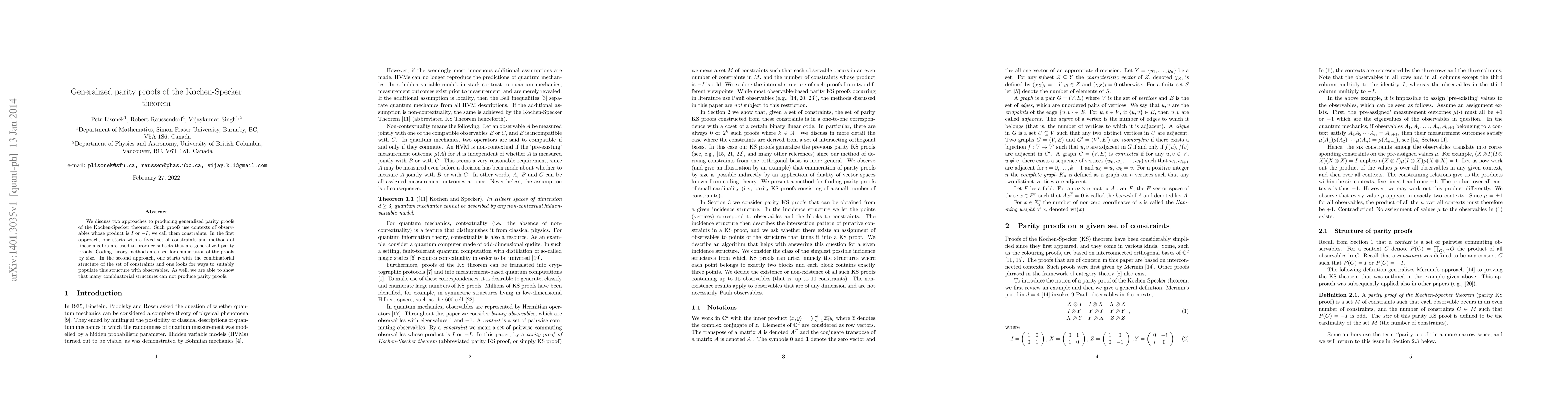 This paper explores two methods for generalized parity proofs of the Kochen-Specker theorem, employing linear algebra and coding theory in one approach and combinatorial structures in the other, and demonstrating that certain structures cannot yield such proofs.