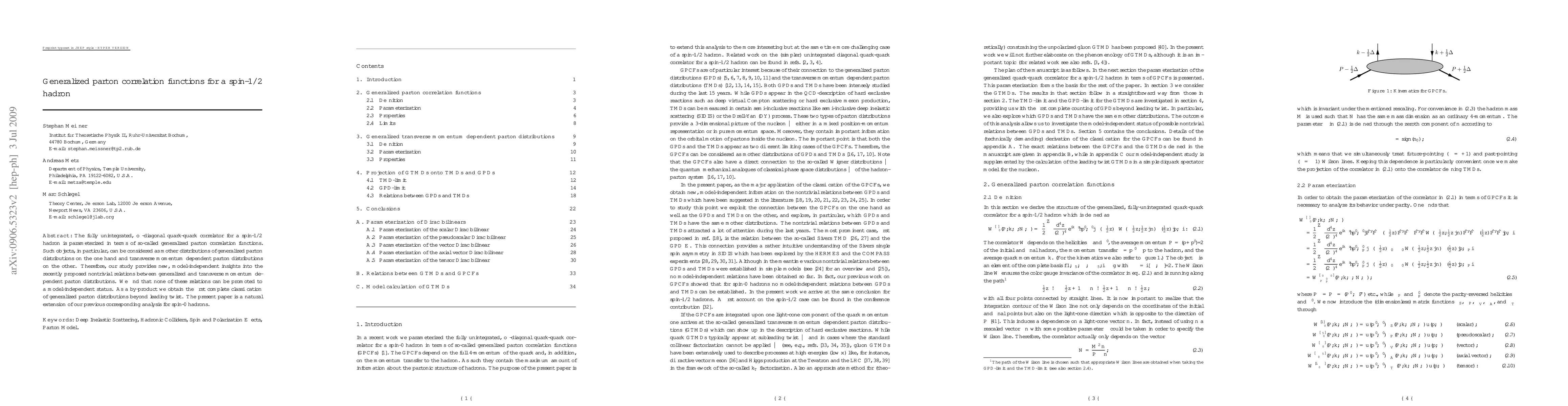 This research extends previous analysis on spin-0 hadrons, parameterizing unintegrated quark-quark correlators for spin-1/2 hadrons using generalized parton correlation functions. The study reveals no model-independent relations between generalized and transverse momentum dependent parton distributions, contrary to previous proposals, and presents the first comprehensive classification of generalized parton distributions beyond leading twist.