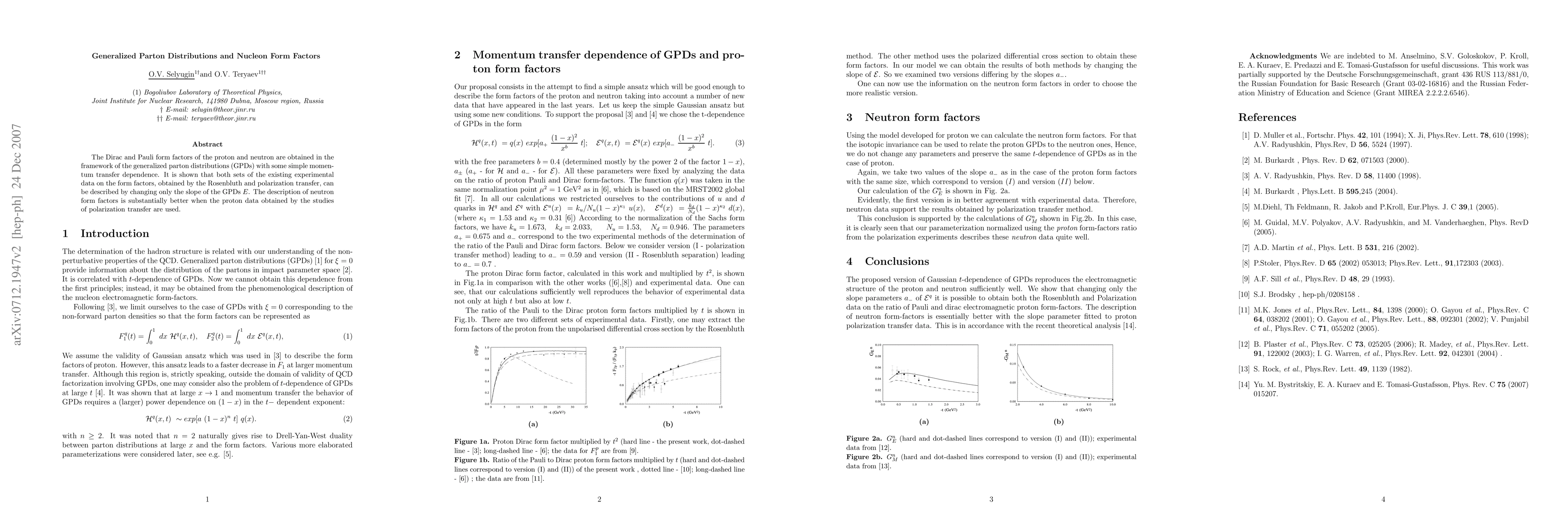 The Dirac and Pauli form factors of the proton and neutron are obtained in the framework of the generalized parton distributions (GPDs) with some simple momentum transfer dependence. It is shown that both sets of the existing experimental data of the form factors, obtained by the Rosenbluth and polarization transfer, can be described by changing only the slope of the GPDs $E$. The description of neutron form factors is substantially better when the proton data obtained by the studies of polarization transfer are used.